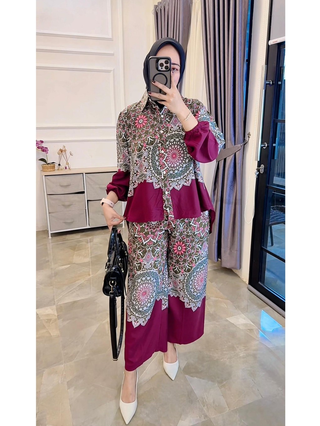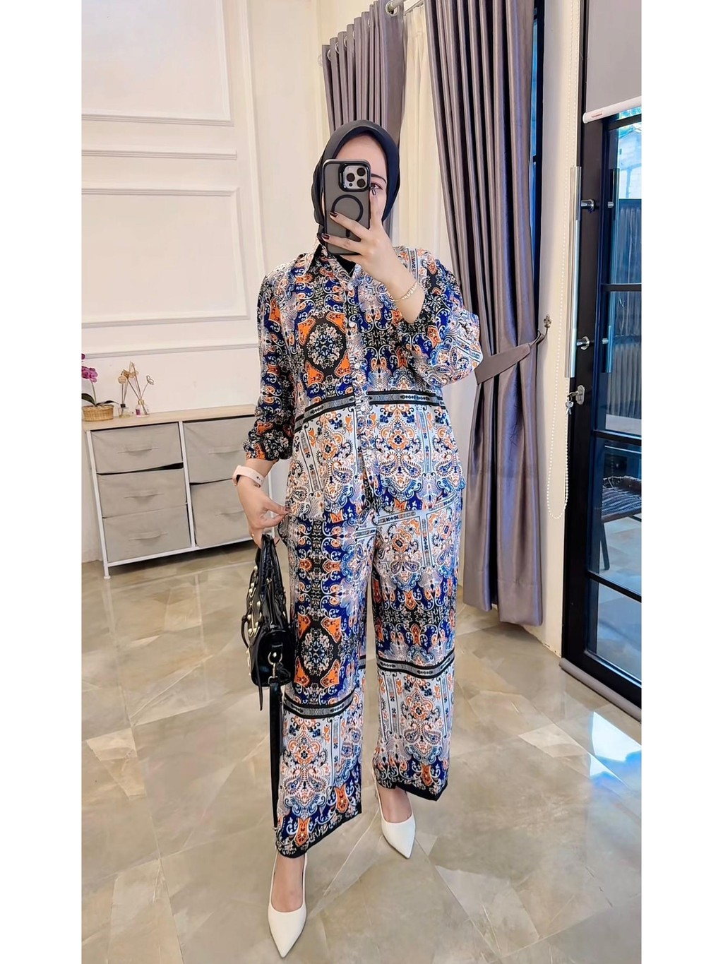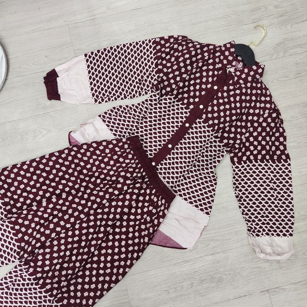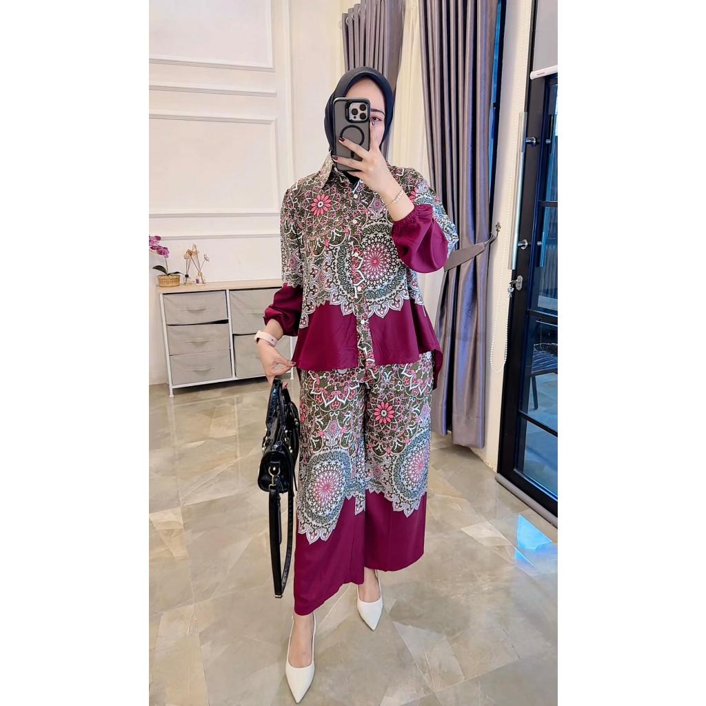 One Set Setelan Rayon Celana Atasan Blouse Wanita Coquette Aesthetic Casual Korean Style Pastel Floral