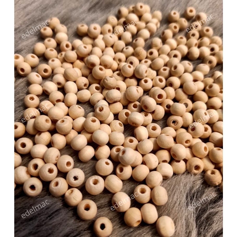 Natural Wooden Beads | Mote | Manik Kayu Bulat uk Kecil | for Bracelets Jewelry DIY