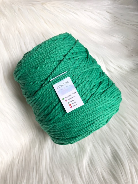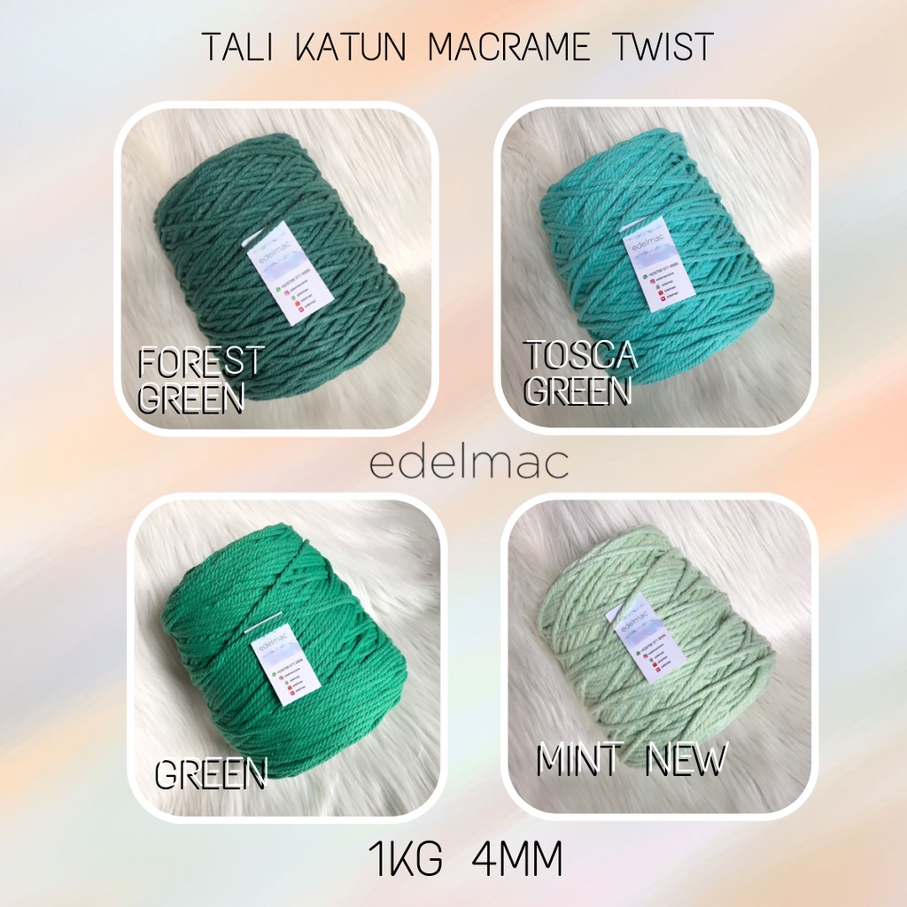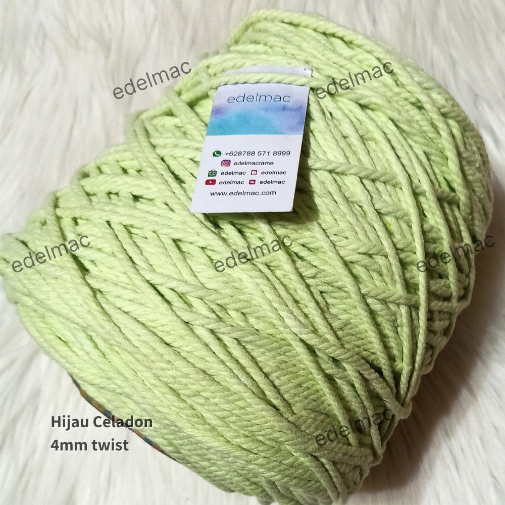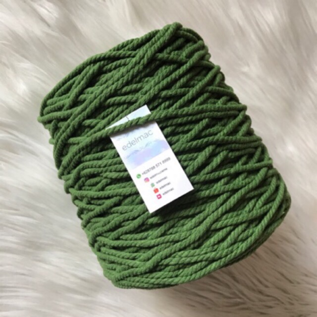 Tali katun macrame hijau twist 4mm premium