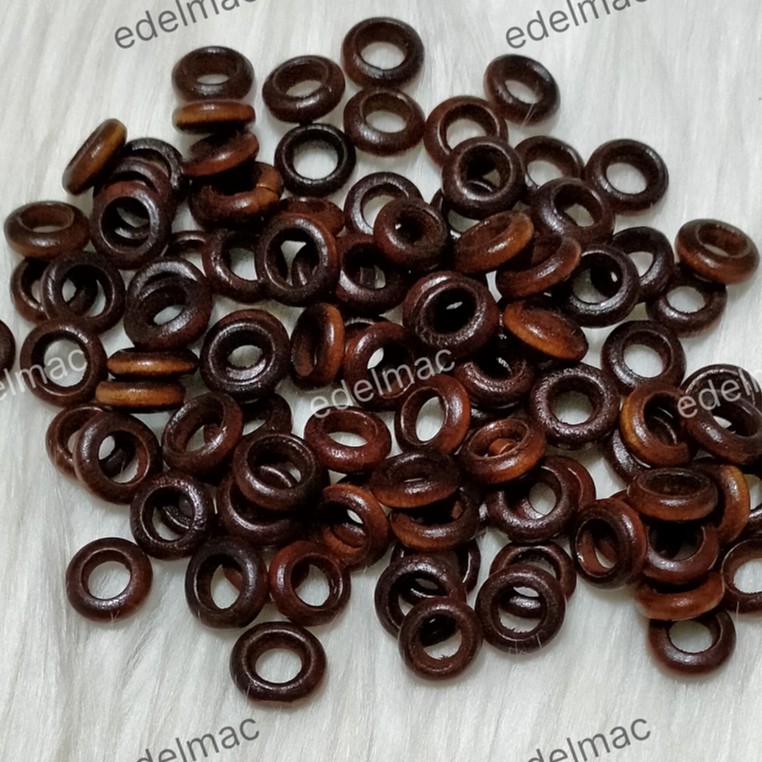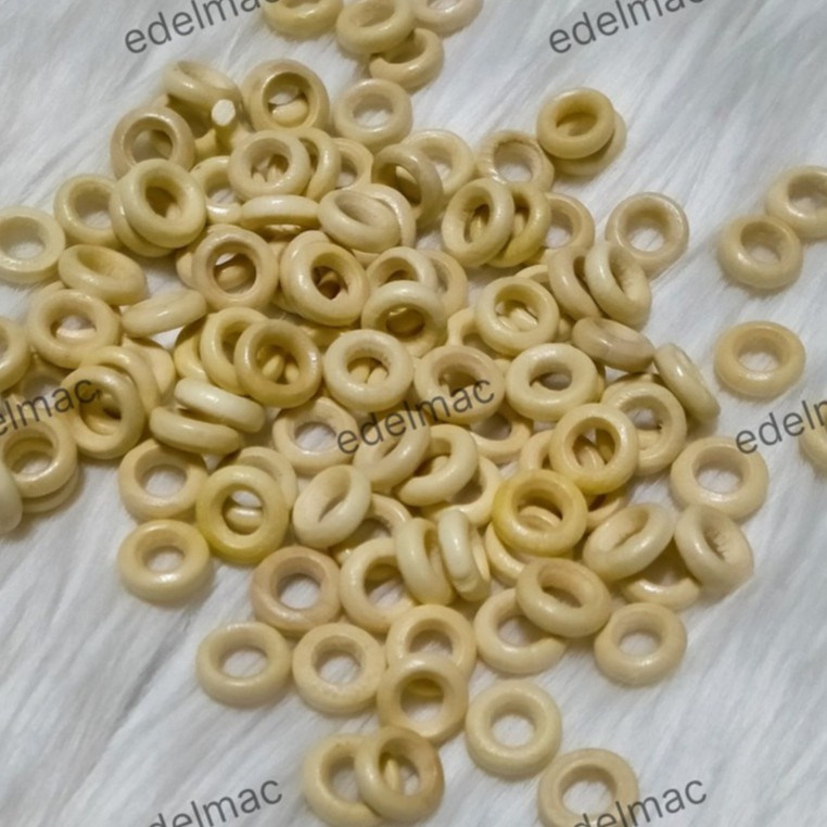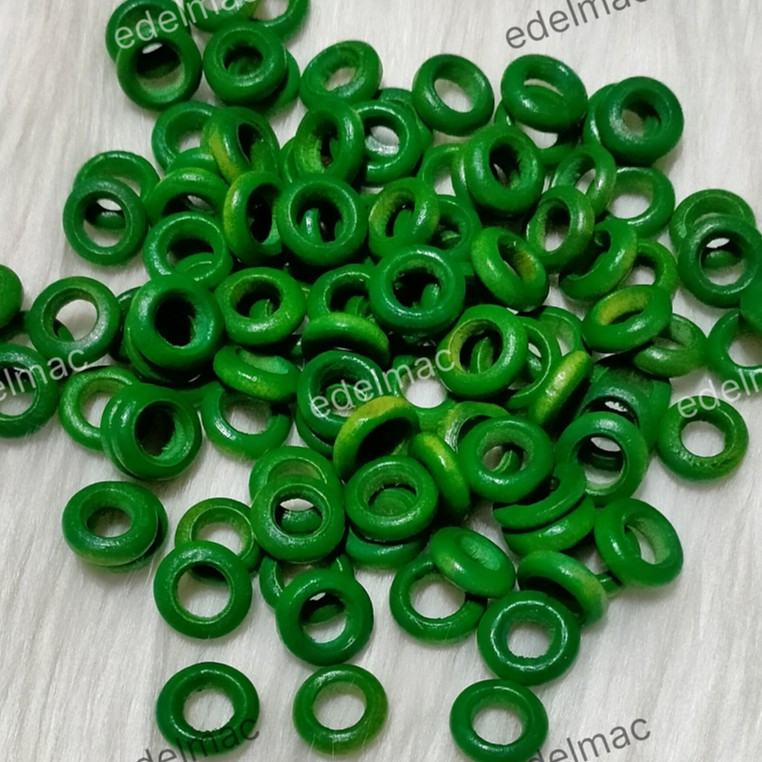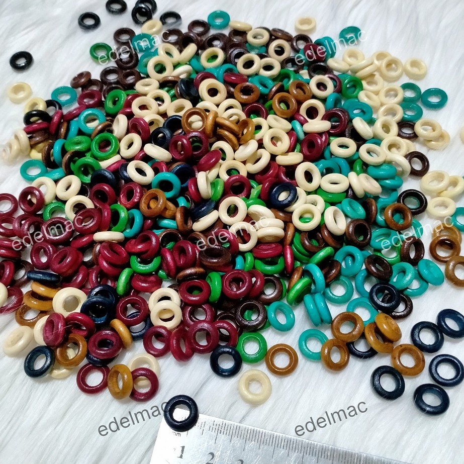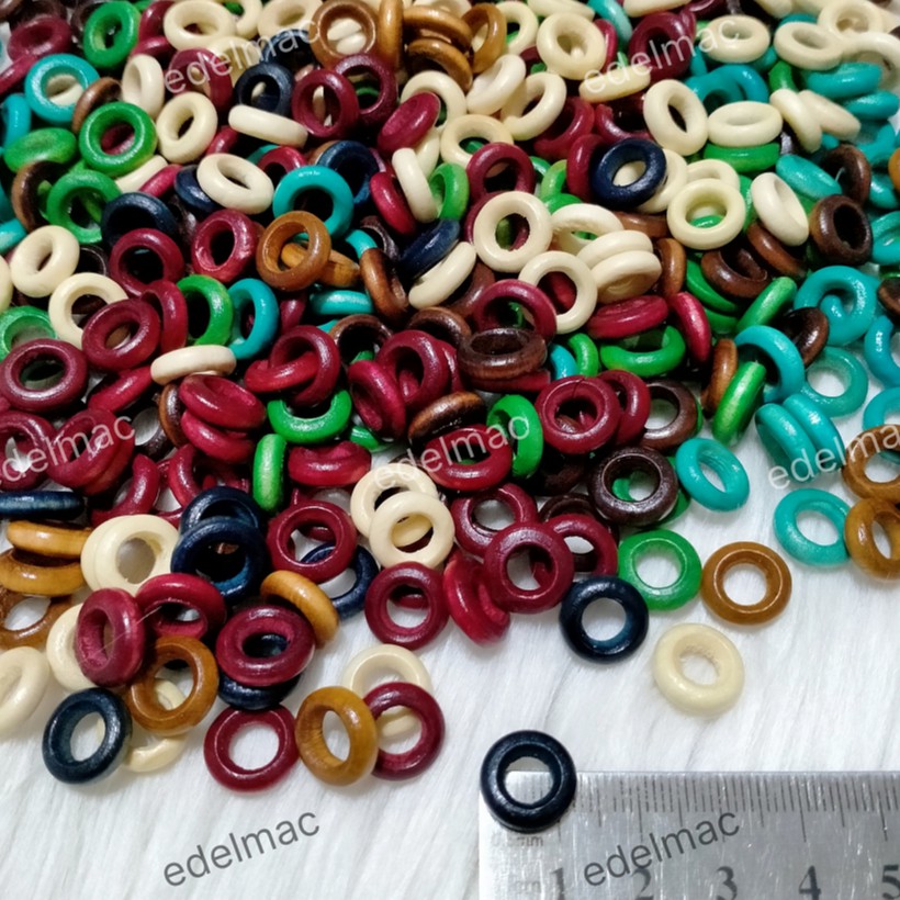 Ring Wooden Beads | Mote / Manik Kayu Bulat Lubang Besar Cet Warna
