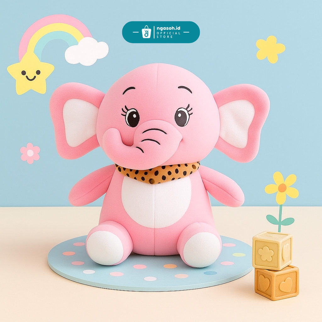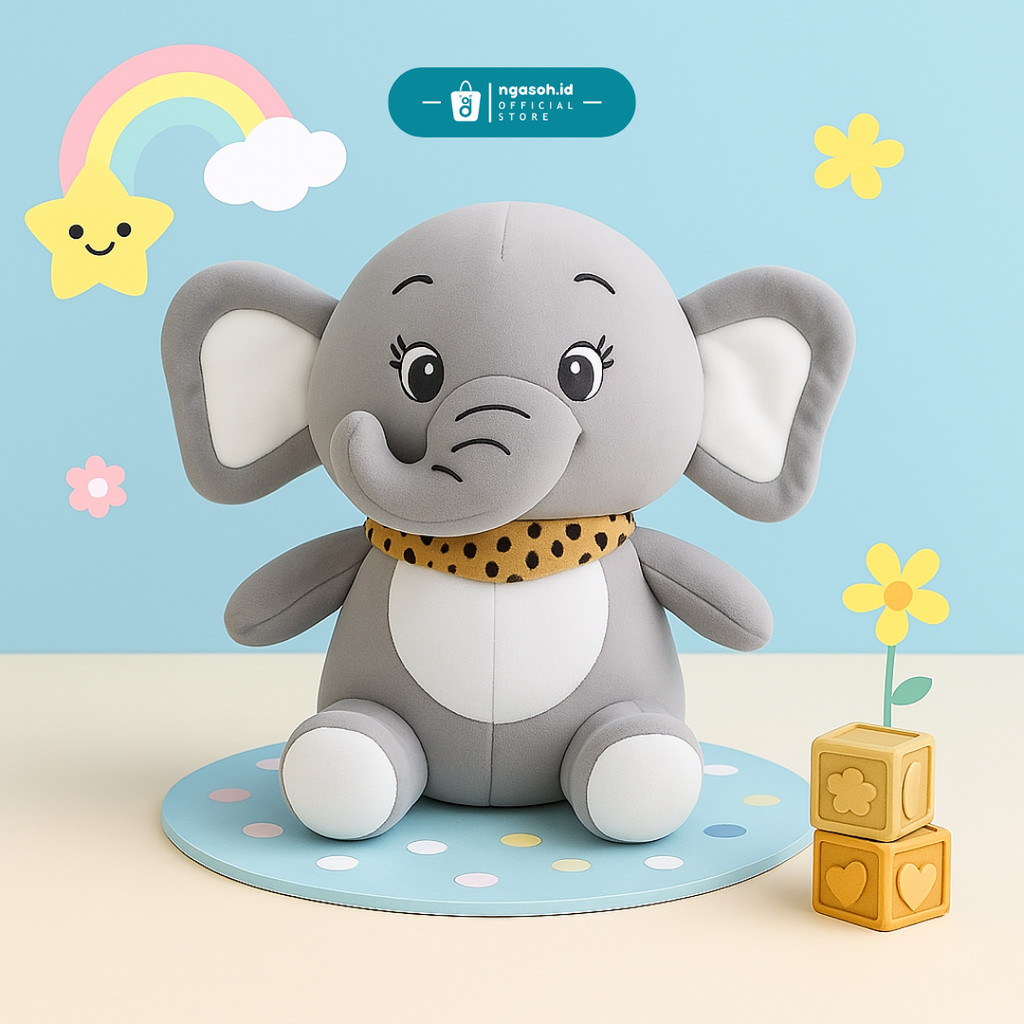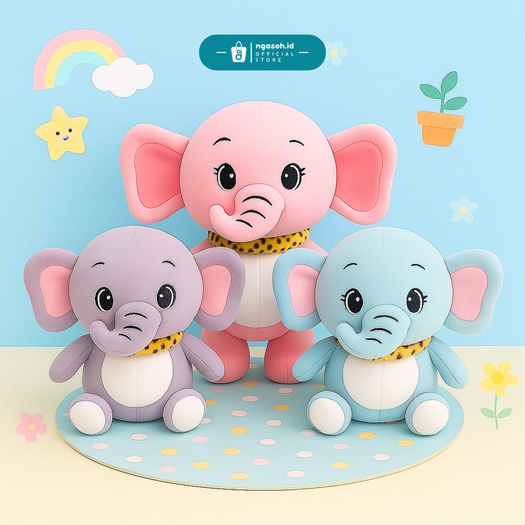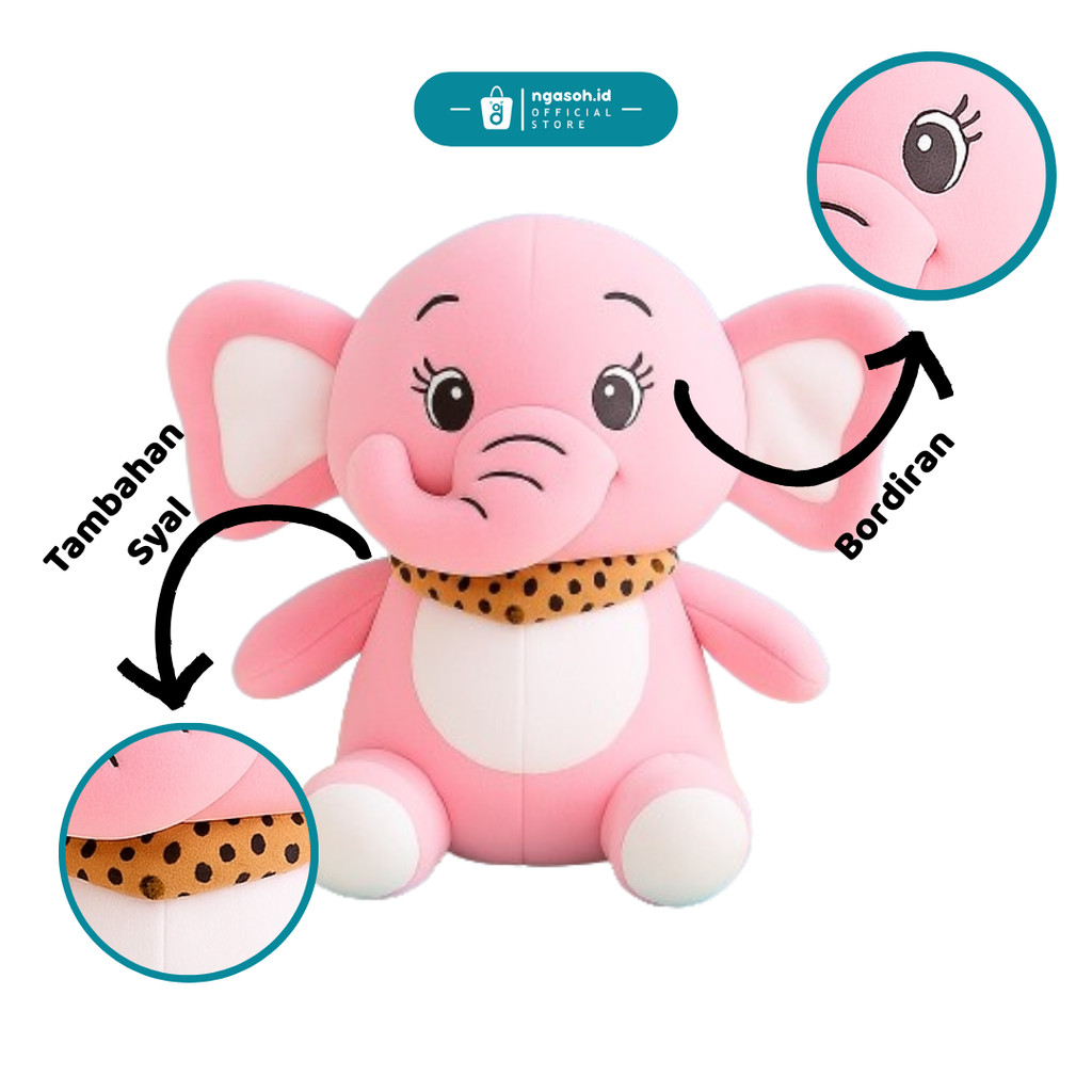 ngasoh.id Boneka Imut Lucu Gajah Gemoy Elephants Pakai Syal Empuk Nyaman dipeluk Mainan Anak Plushie