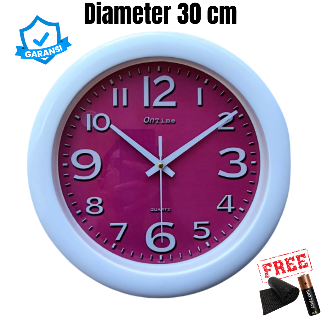 Jam Dinding ONTIME 767 Series Minimalis Polos Custom Diameter Besar 30cm