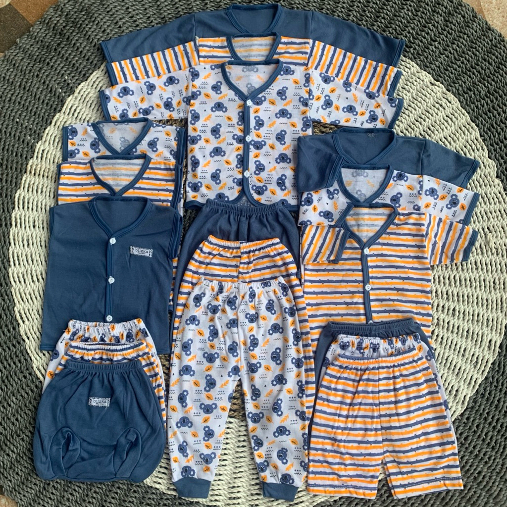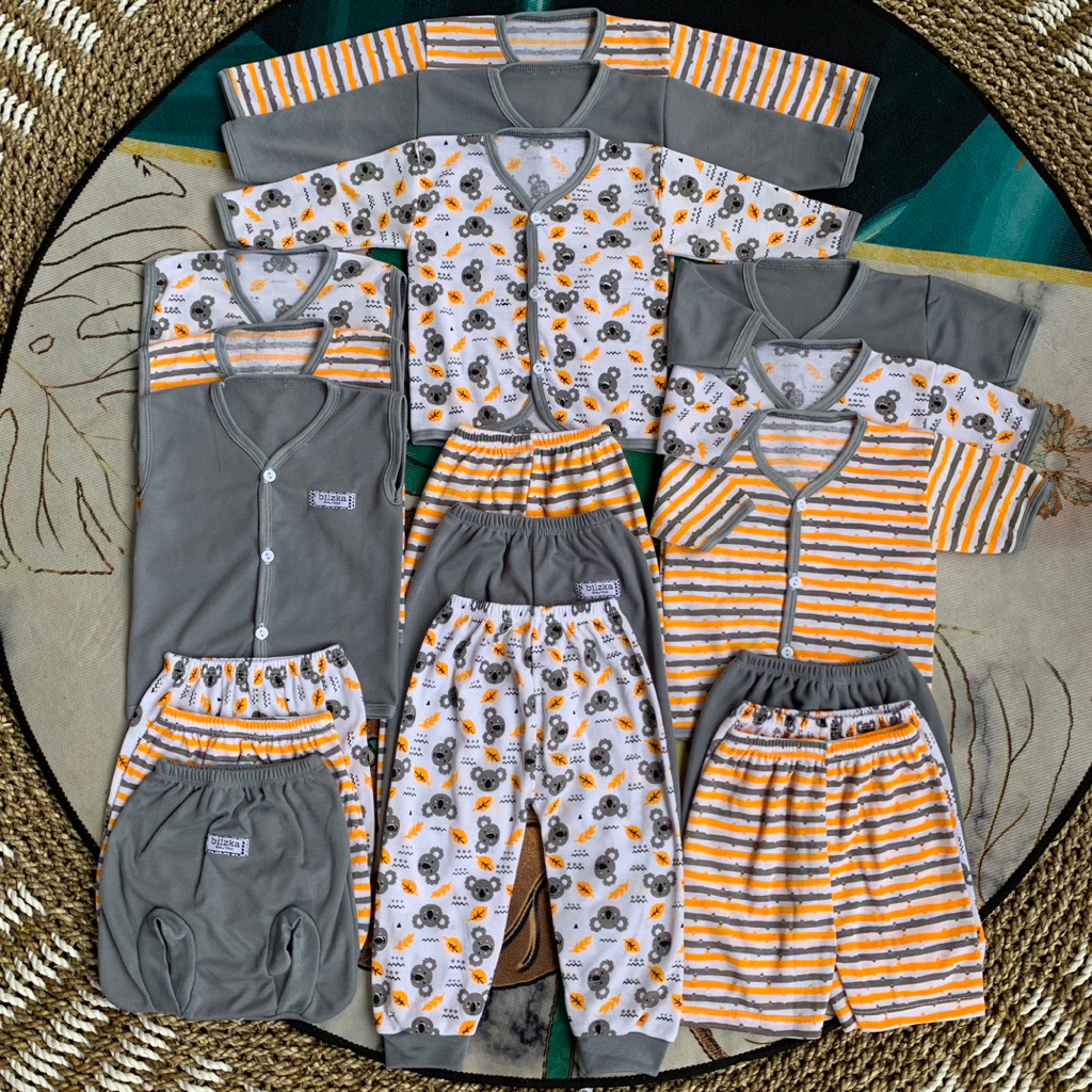 paket hemat 18 pcs setelan pakaian bayi perlengkapan lahiran 0-3 bulan warna abu