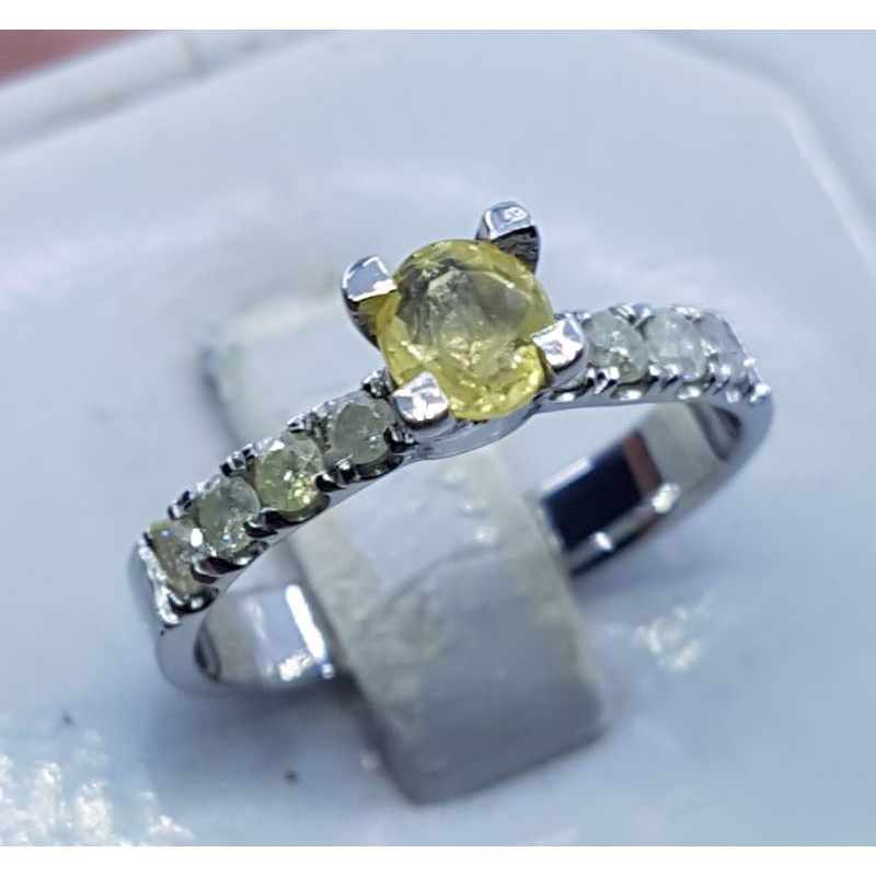 D478 cincin perak yakud yellow safir kuning intan berlian diamond asli 12 atau 5.5 murah