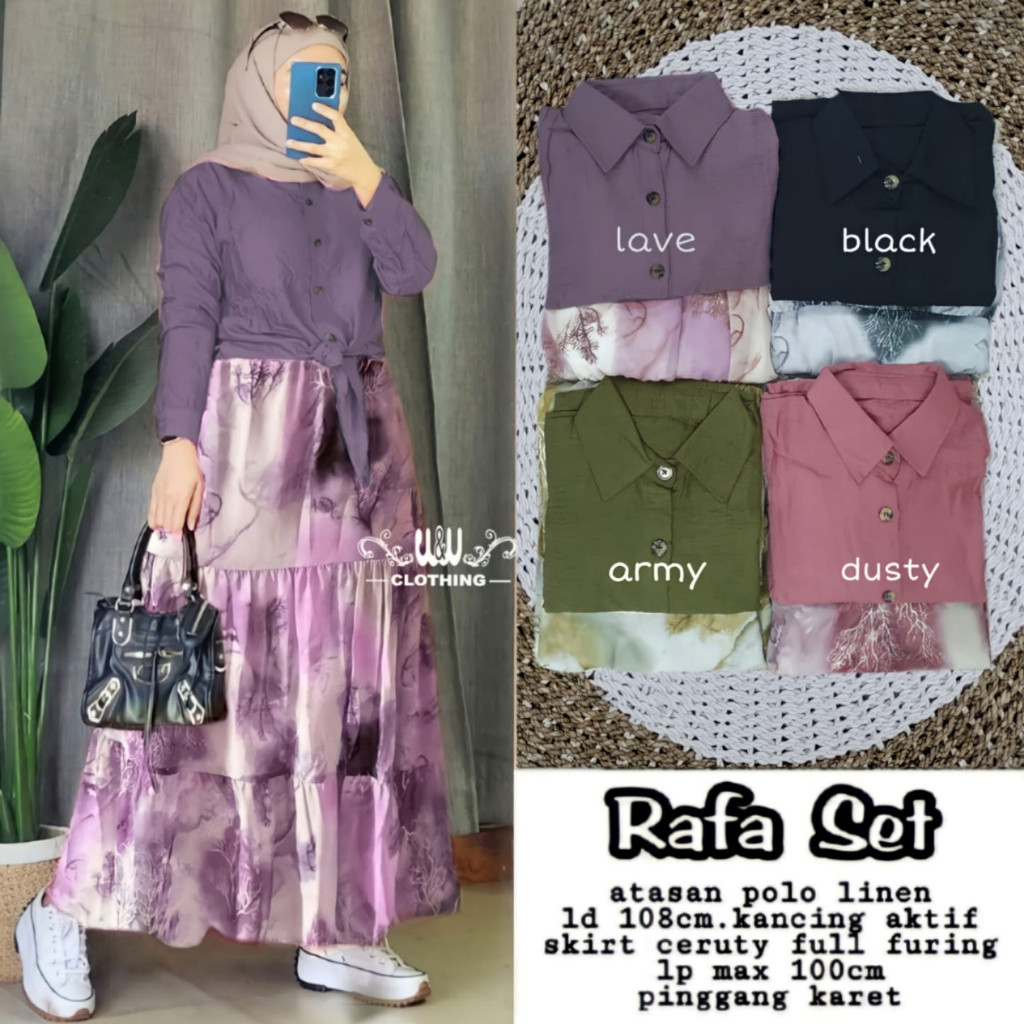 PROMO Setelan Rafa Set LD 108 Atasan Polo Linen Bawahan Ceruty Full Furing