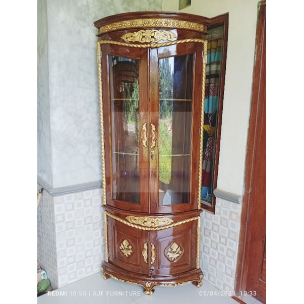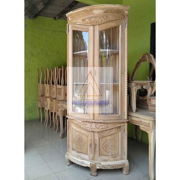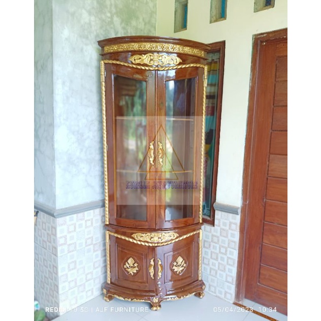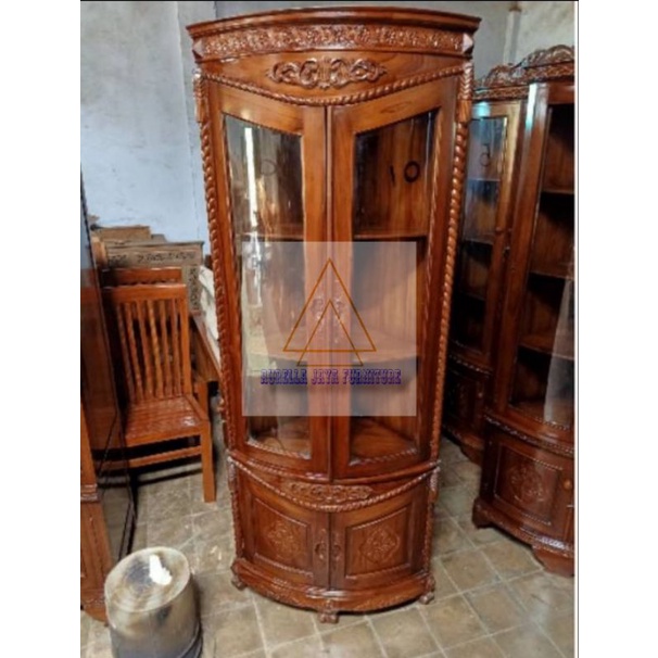 lemari sudut jati jepara / lemari sudut ruang tamu minimalis / lemari pojok tambang putih duco / lemari pojok ruang tamu minimalis