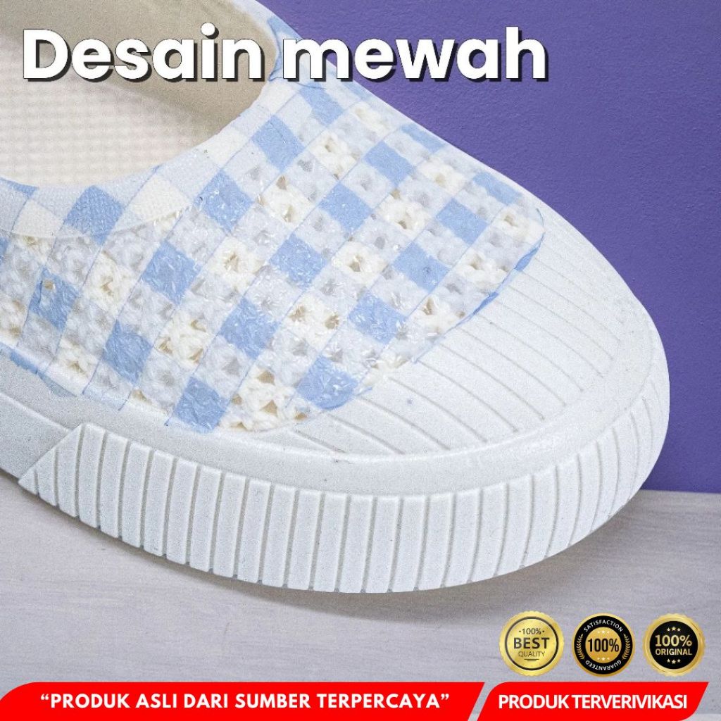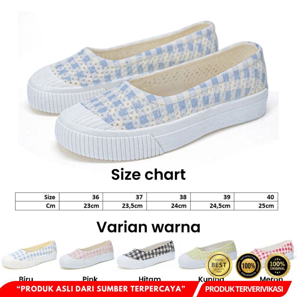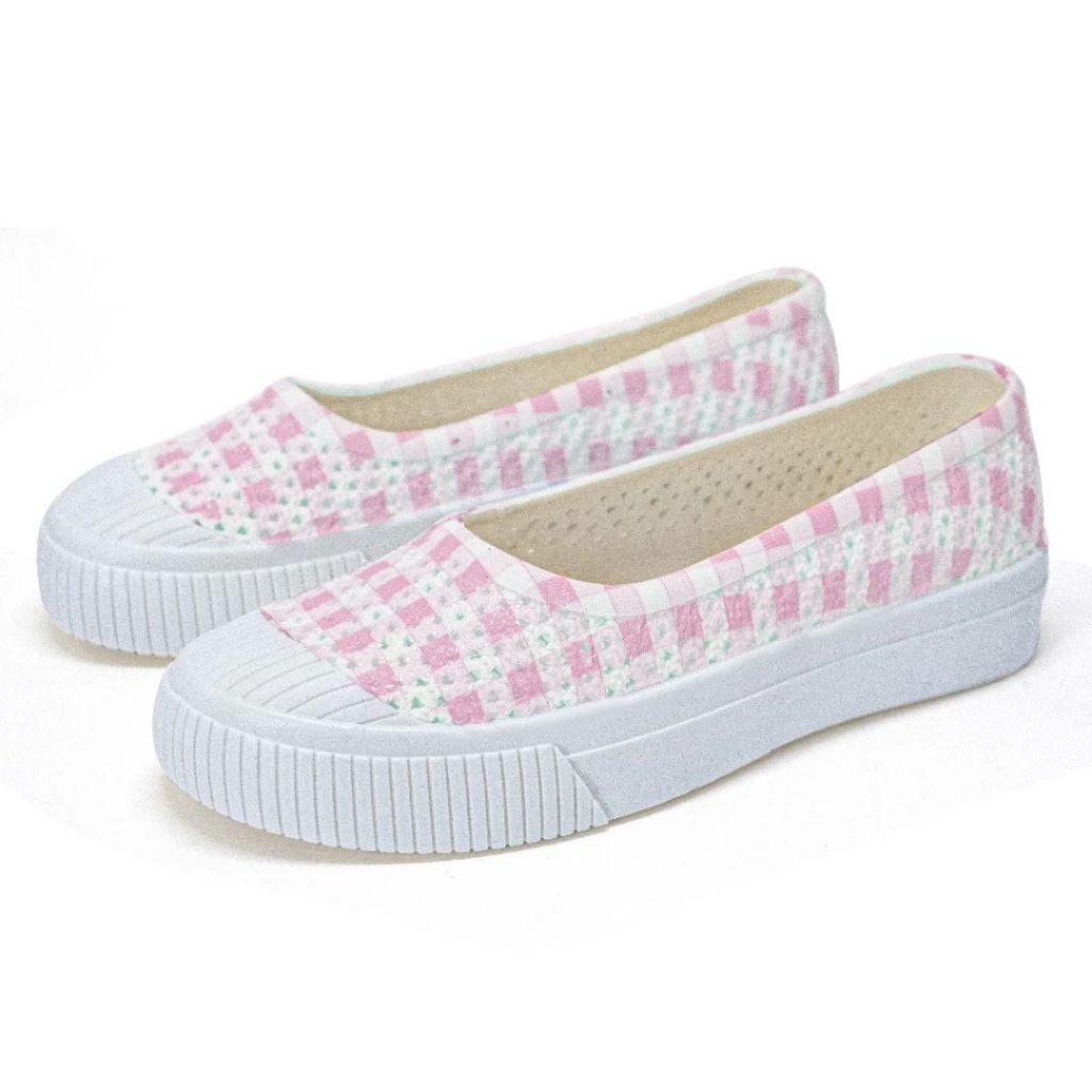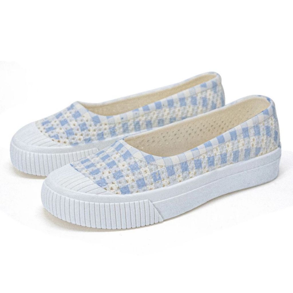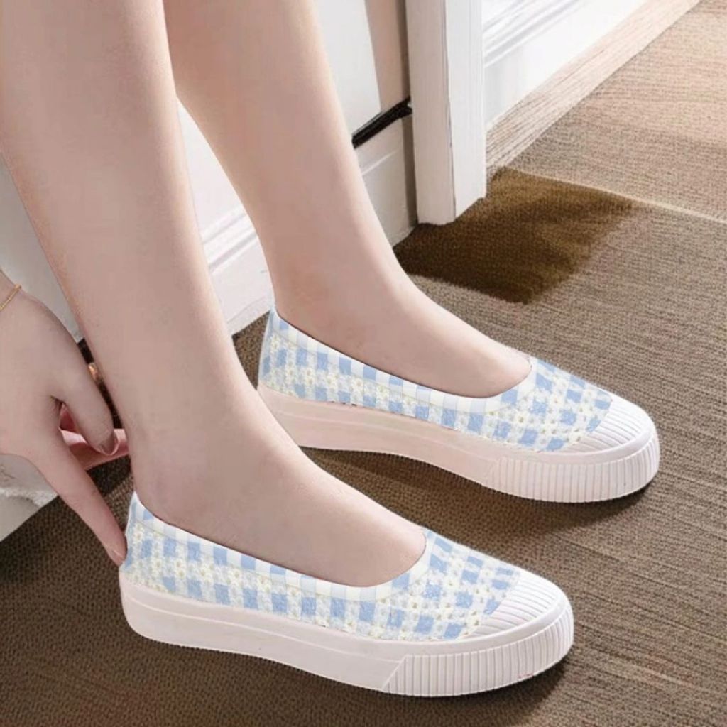 Sepatu Wanita Slip On Motif Kotak Catur Ruimo 522 Bahan Full Karet - [MRH3]