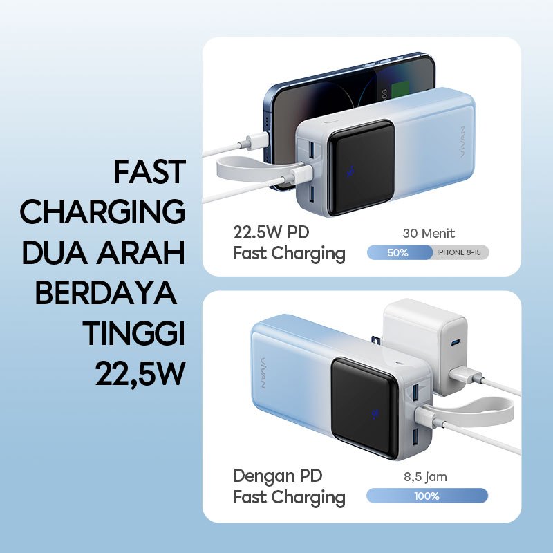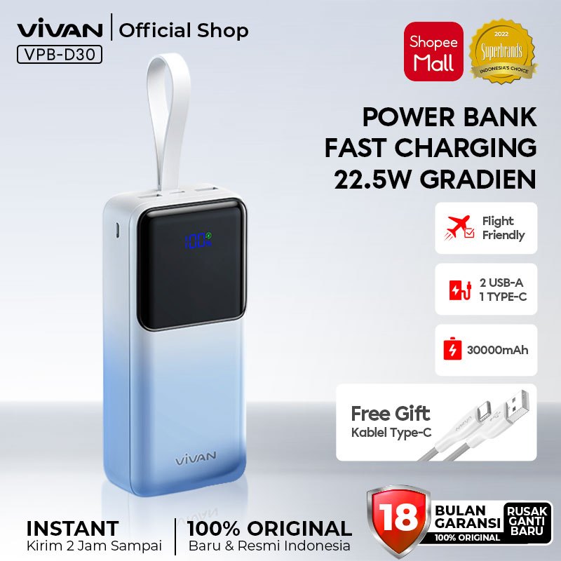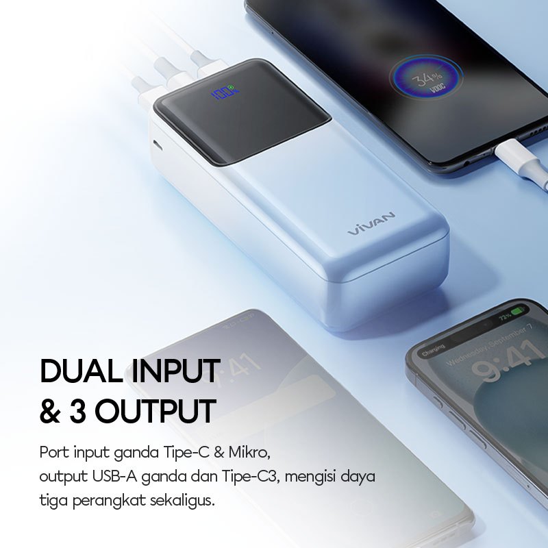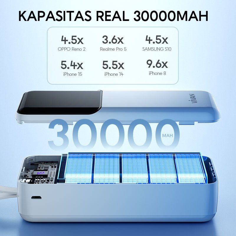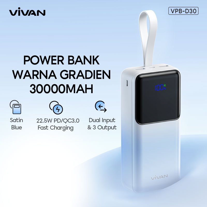 VIVAN Powerbank 30000/20000/10000 mAh Fast Charging PD 22.5W 2 Input & 3 Output VPB-D30 - Garansi 18 Bulan (3)