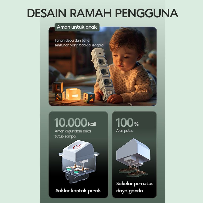 VIVAN Safety Socket VPS-H PRO Series Saklar Adaptor Stop Kontak Kabel Listrik Inti Tembaga Colokan Multifungsi USB dan Type C Original - Garansi 3 Tahun