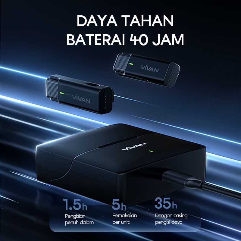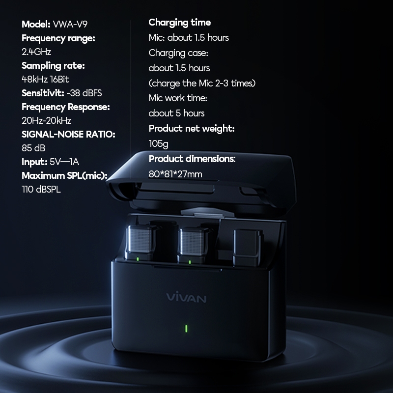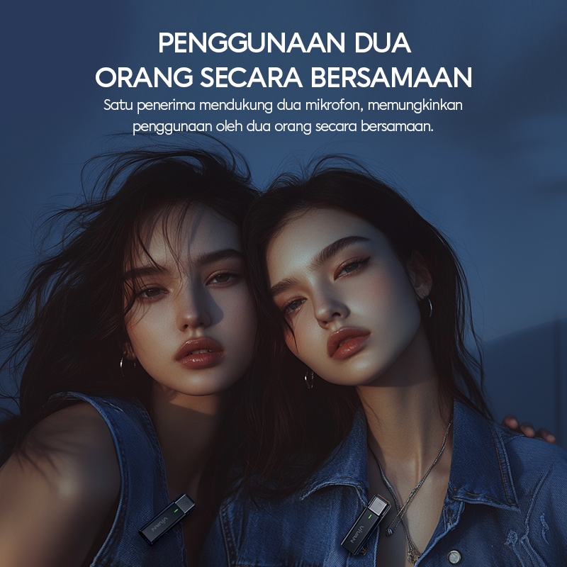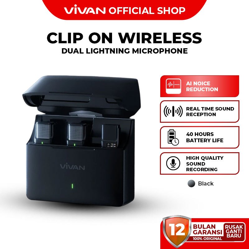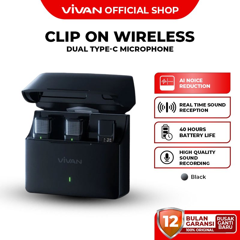 VIVAN Wireless Dual Microphone VWA-V9 HQ Sound Recording AI Noise Reduction Clip On Garansi 1 Tahun