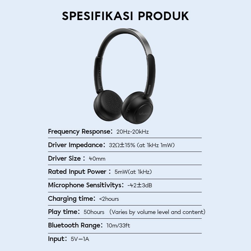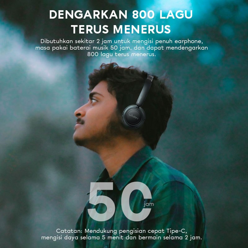 VIVAN Headphone Bluetooth H100S v5.4 HiFi Sound ENC Mic Playtime 50 Hours | Garansi Resmi 1 Tahun