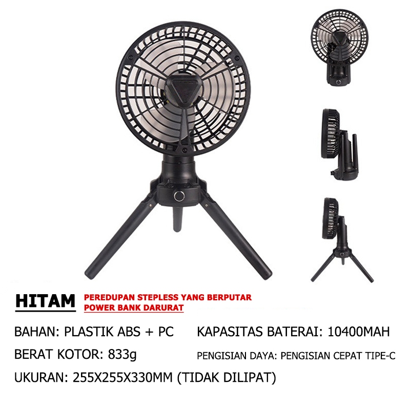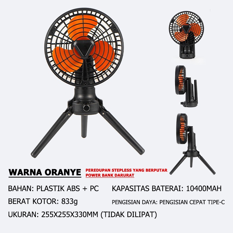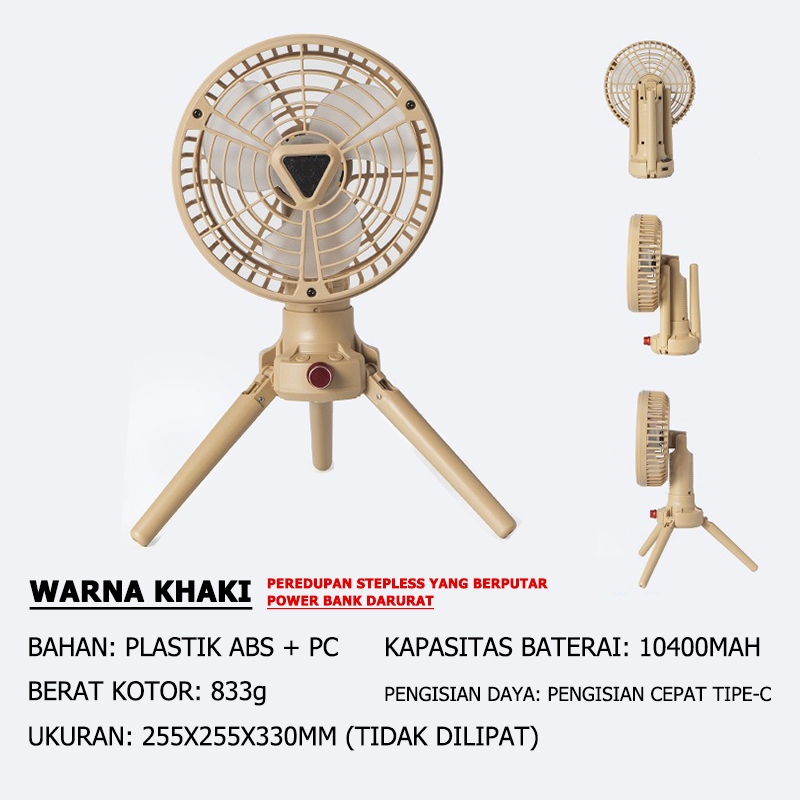 Mountpeak 10400MAH Rotasi 360 derajat Kipas Berkemah Kipas Angin Luar Ruangan Portable Fan Kaki tiga Portable