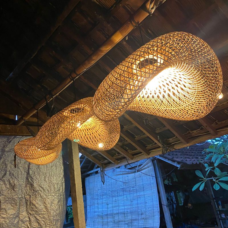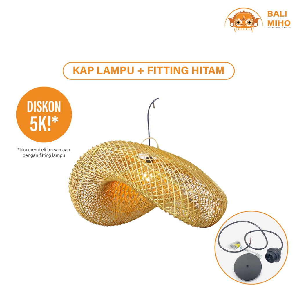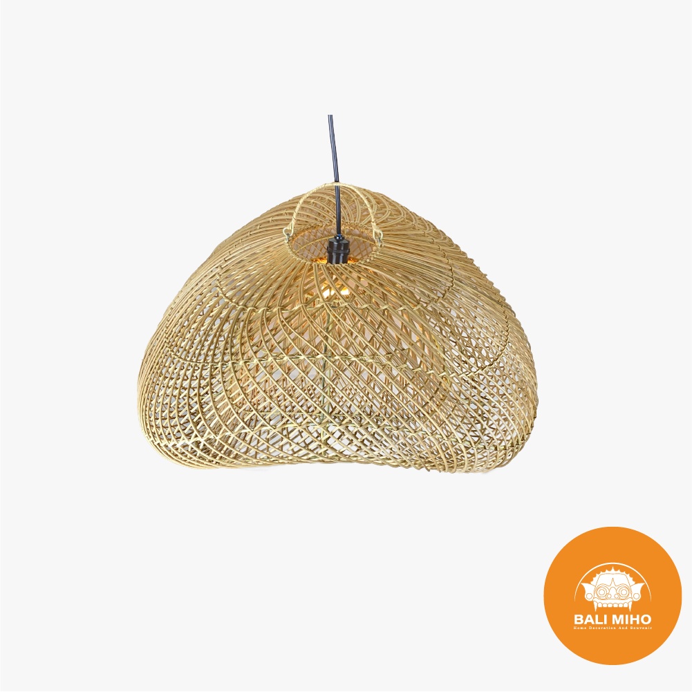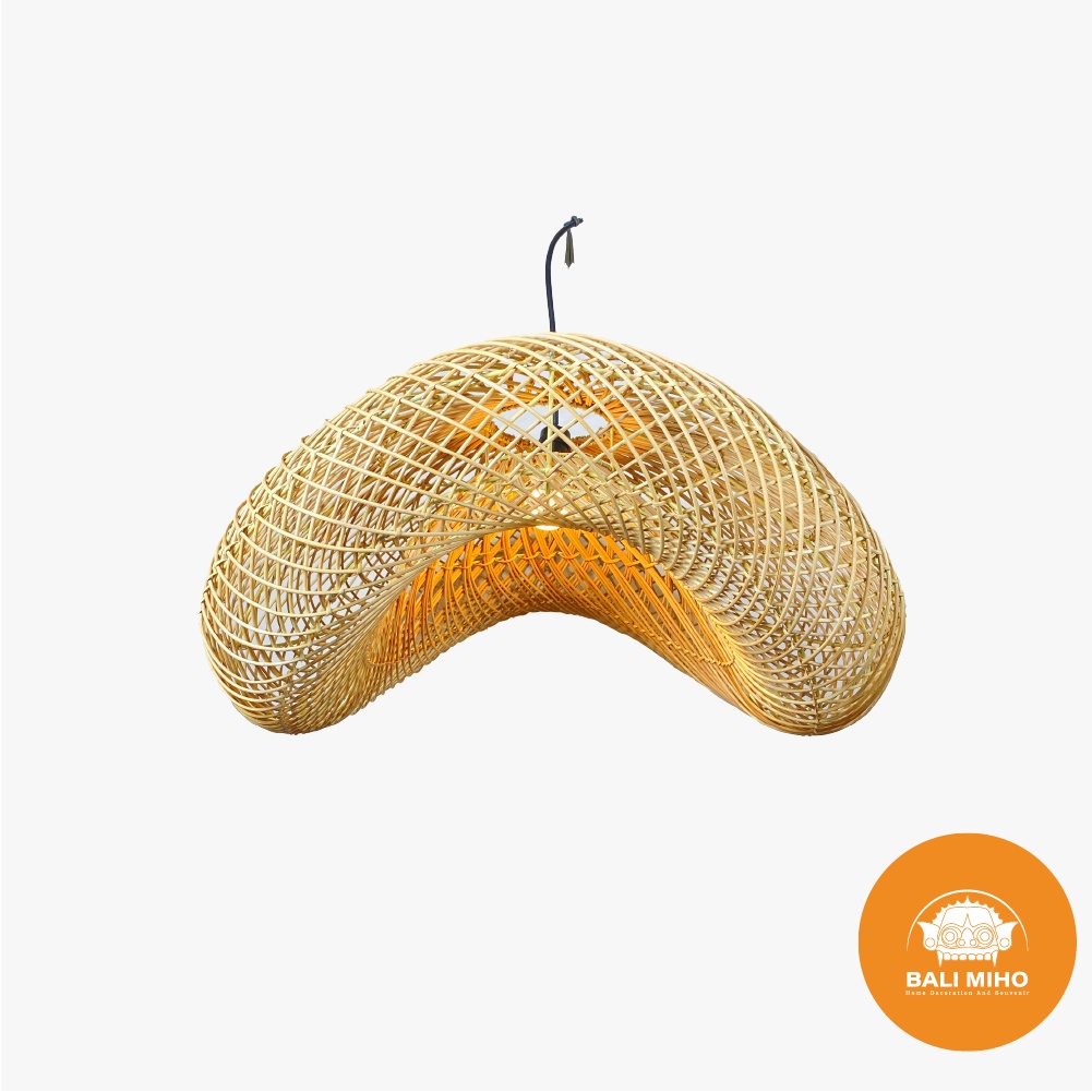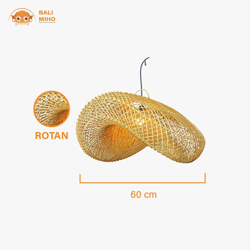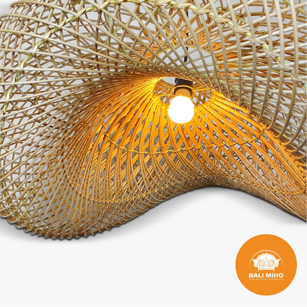 Kap Lampu Model Ombak 60 Cm - Kap Lampu Rotan - Kap Lampu Ratan - Rattan Lampshade - Lampu Rotan - Lampu Cafe