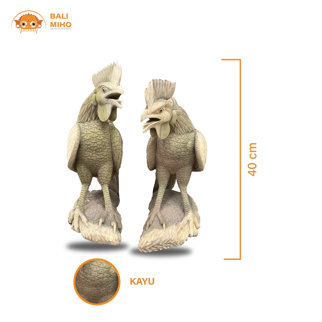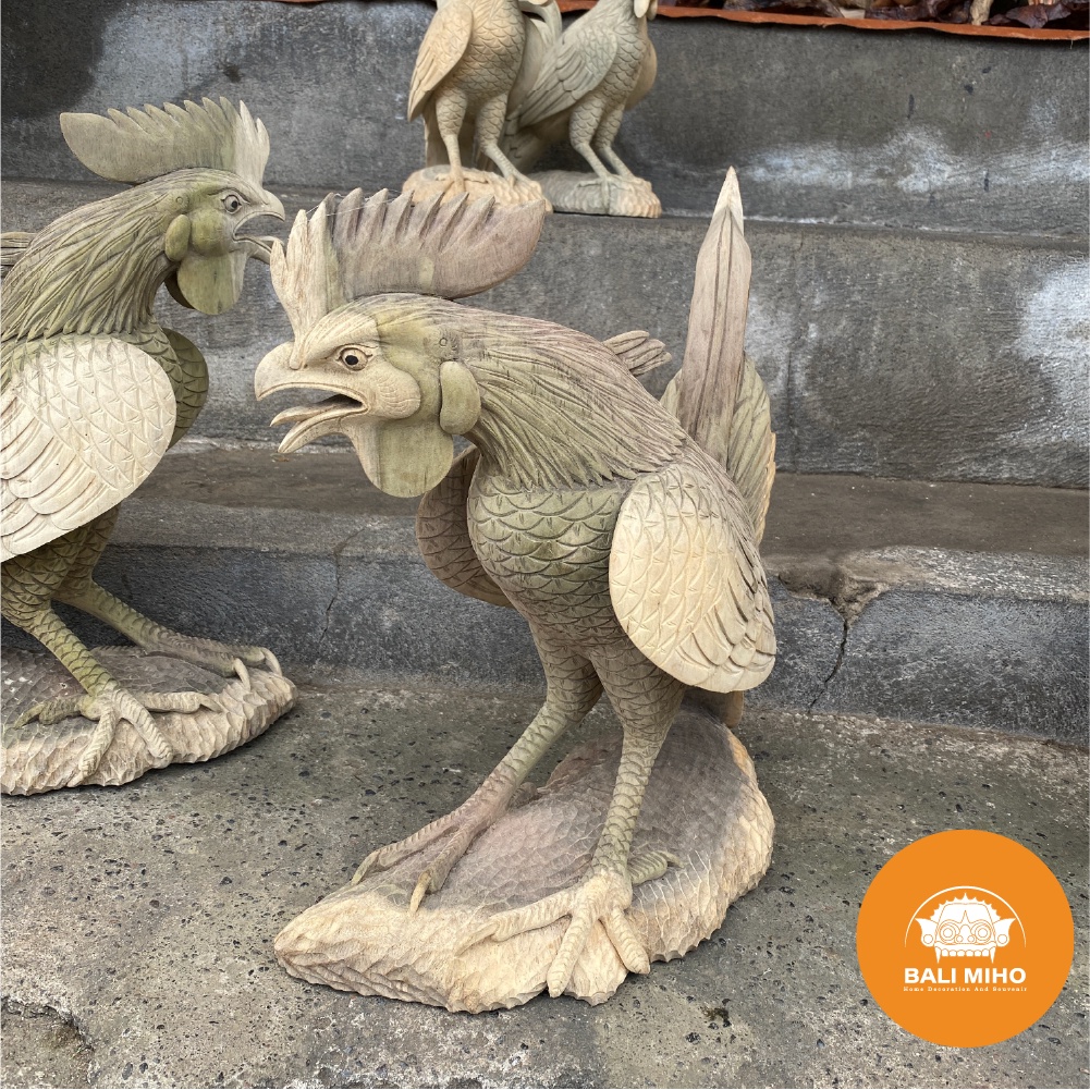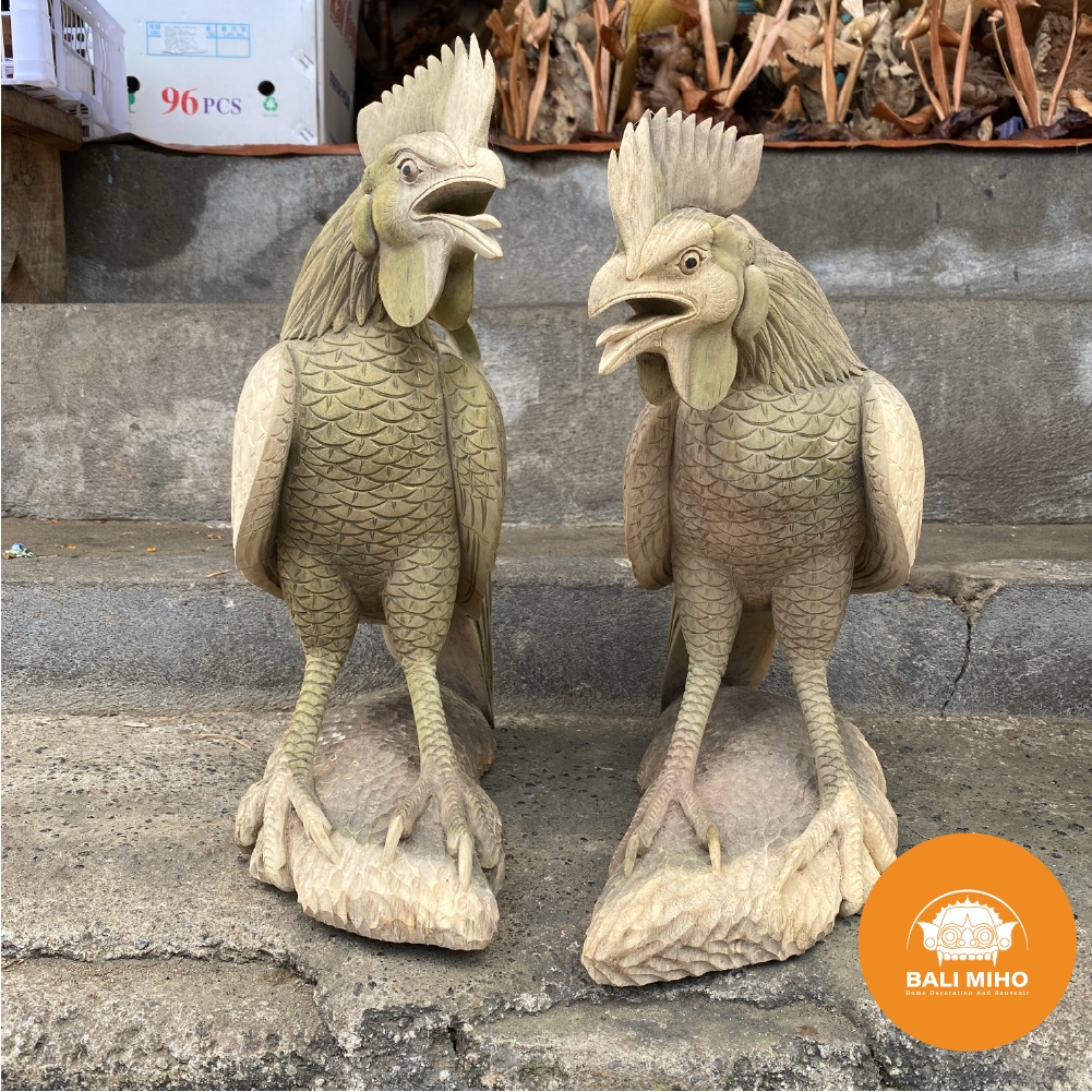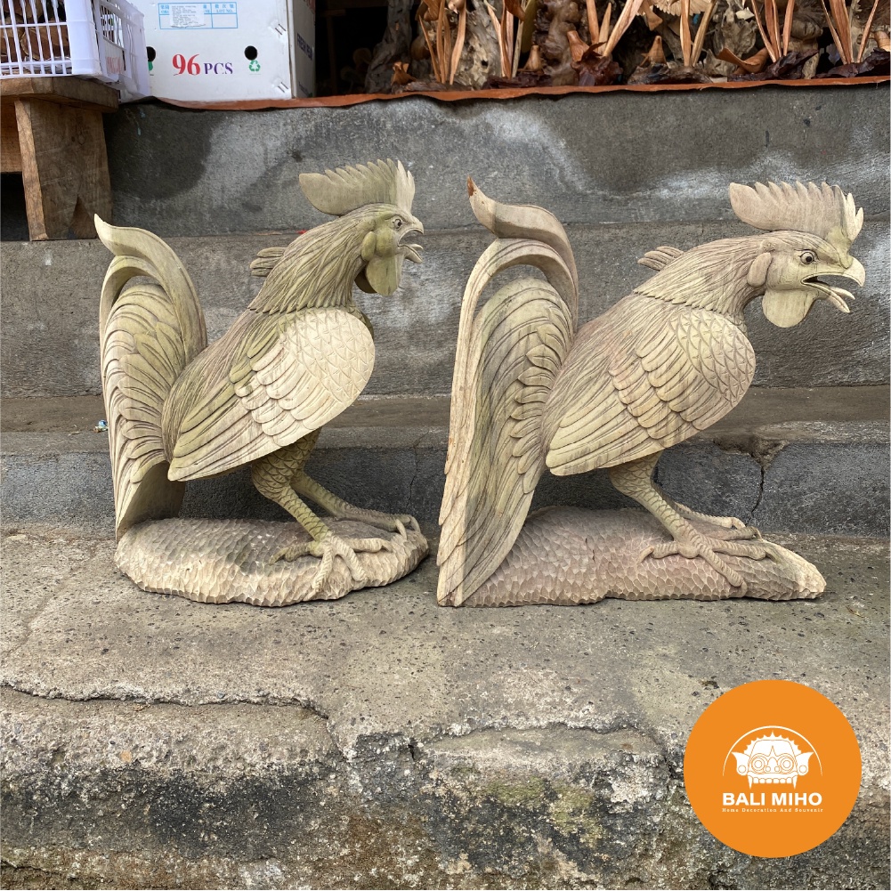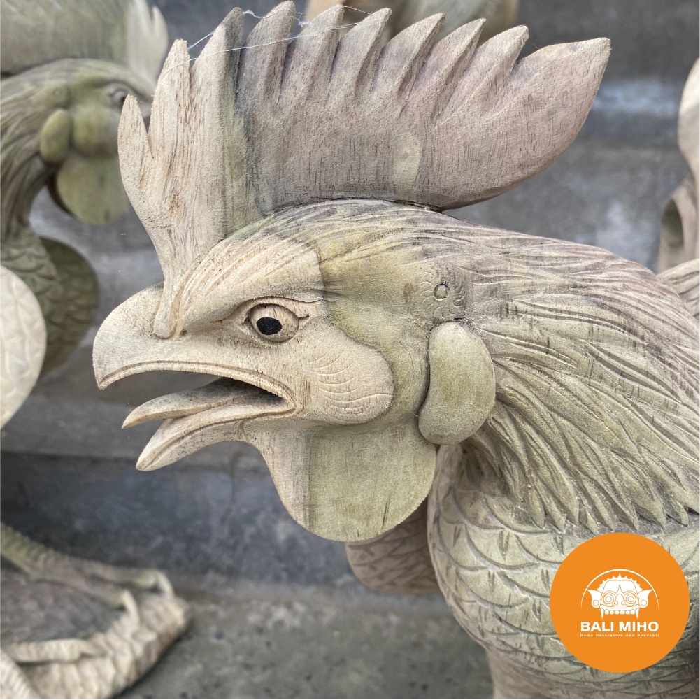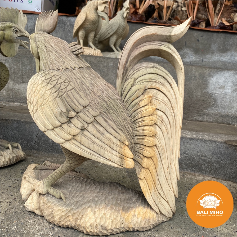Patung Ayam Jago Kayu - Pajangan Ayam Jago Kayu - Dekorasi Patung Kayu - Rooster statue - Chicken Statue - Patung hewan - Patung Binatang Kayu