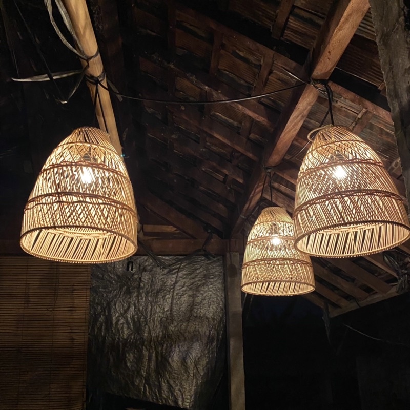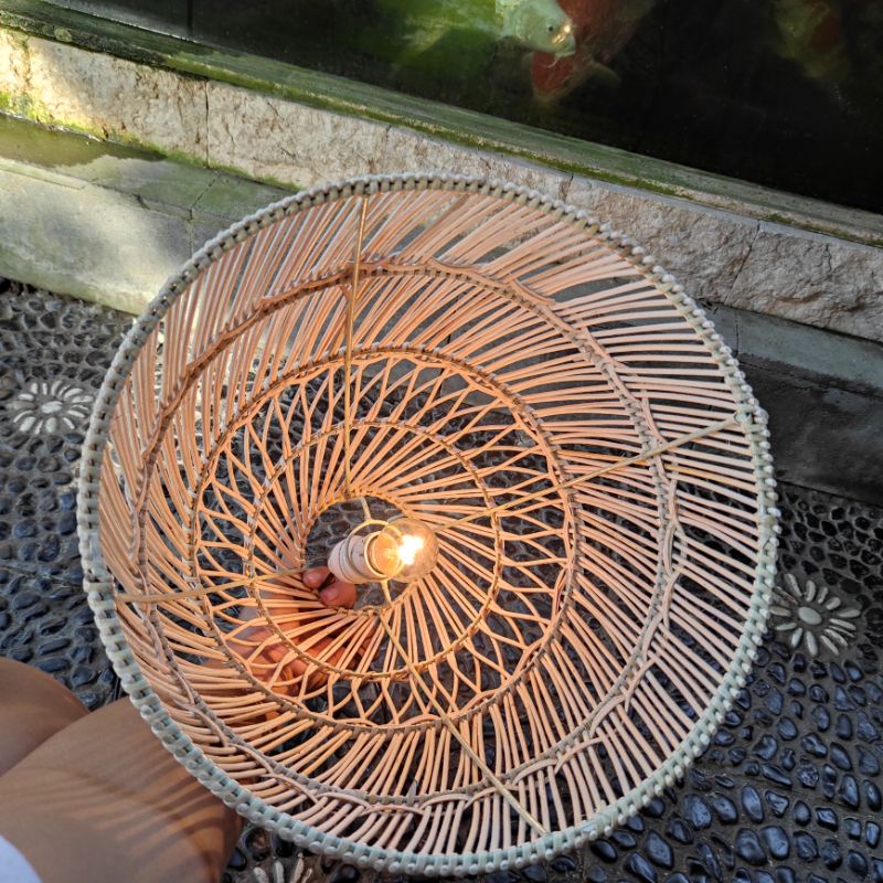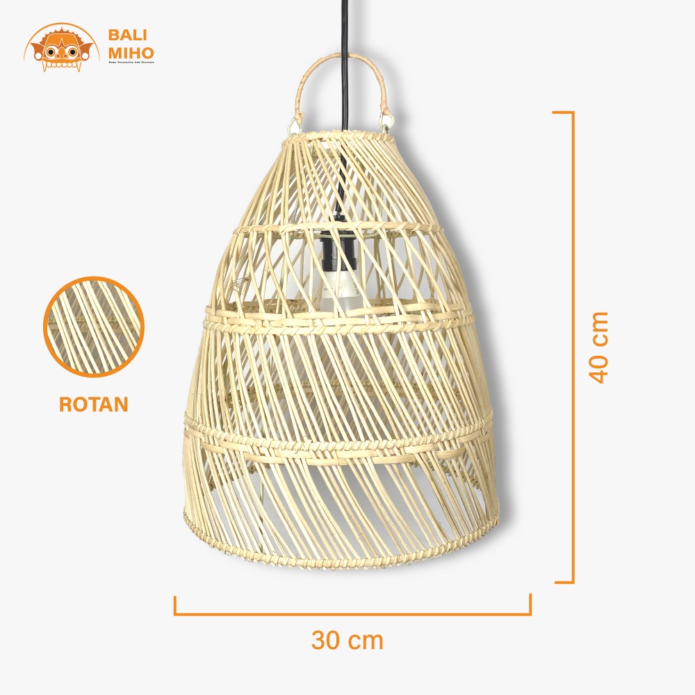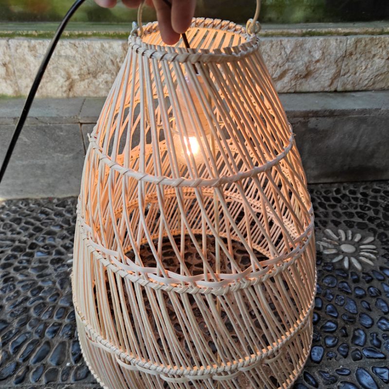 Kap Lampu Rotan Model Kurungan 30x40/Kap Lampu Kayu/Lampu Rotan/Lampu Cafe/Lampu Unik