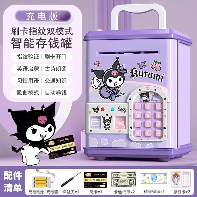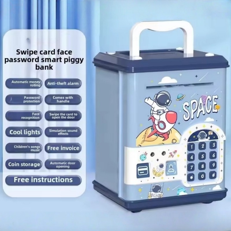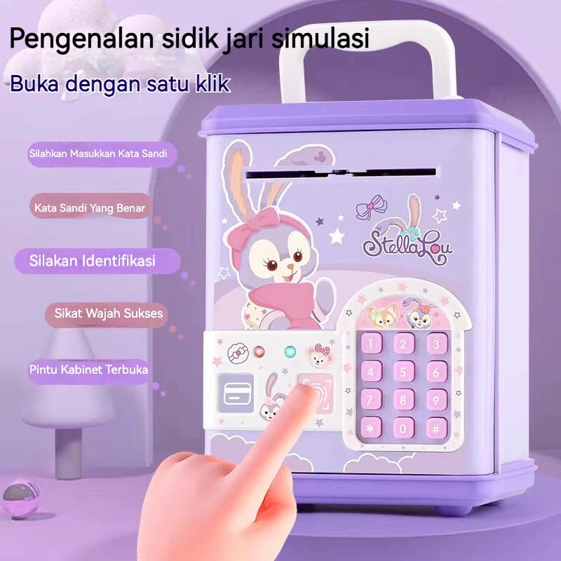 LOOOOPY Celengan Mainan ATM Brankas Gesek Kartu Untuk Membuka Pintu Fingerprint Bank Mesin/Mainan Edukasi ATM Celengan Tabungan Sidik Jari Brankas Baterai Dengan Password Fingerprint