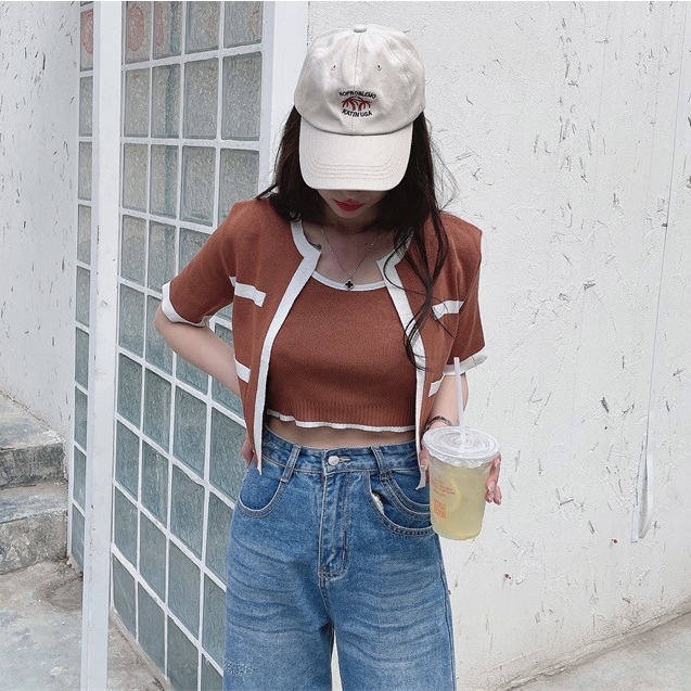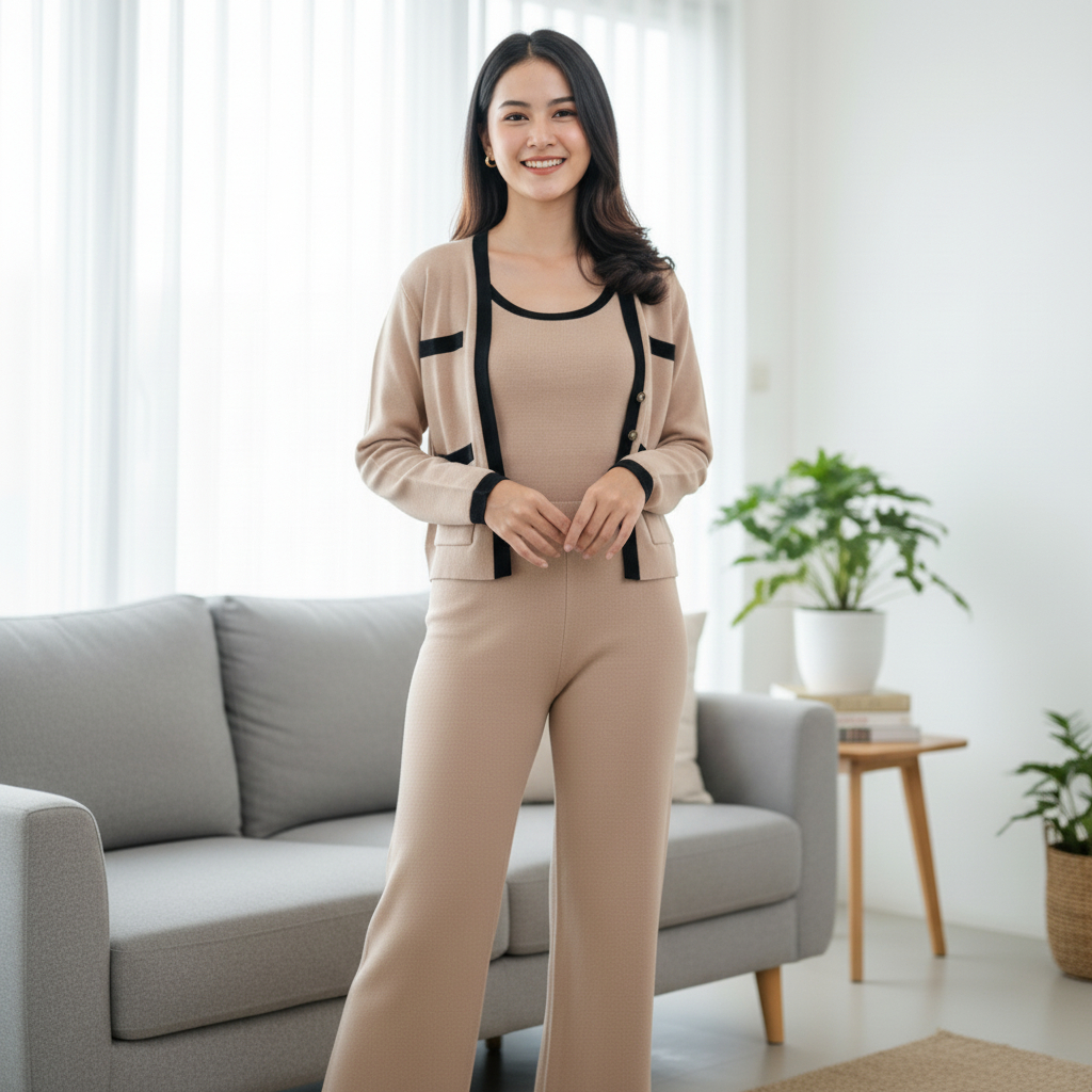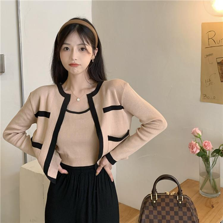 AJWShop WAB Atasan Tanktop Cardigan Set Lengan Panjang Korean Style Kekinian Rajut Import Premium | Baju Atasan Wanita Tanktop Cardigan Lengan Panjang Rajut Premium Mewah Elegan | Cardigan Set Import | Baju Atasan Wanita Tebaru Kekinian