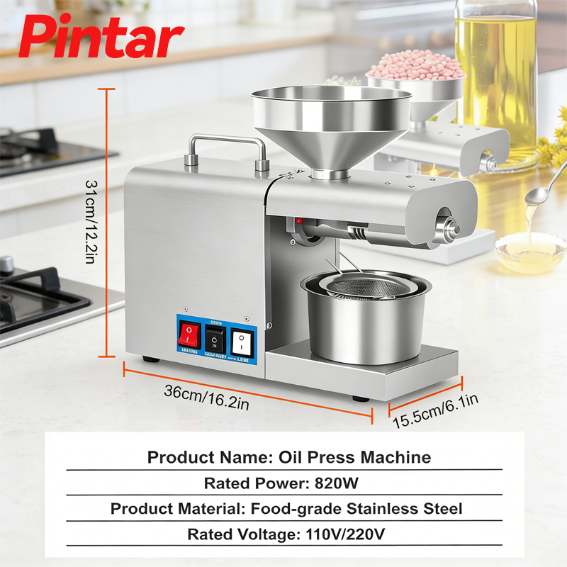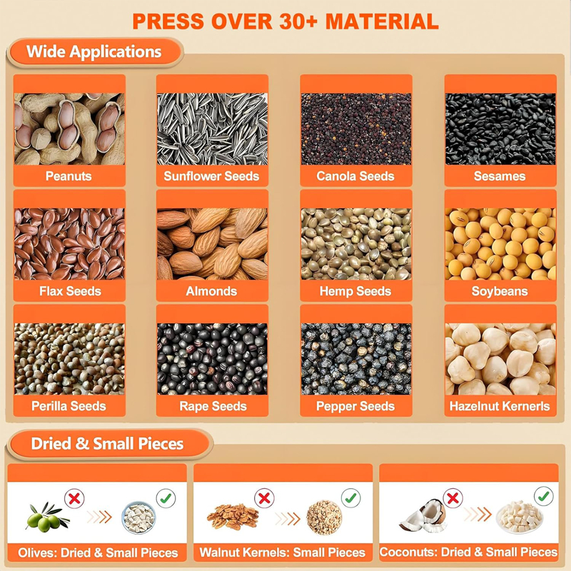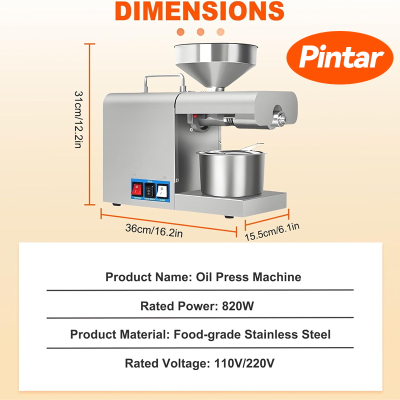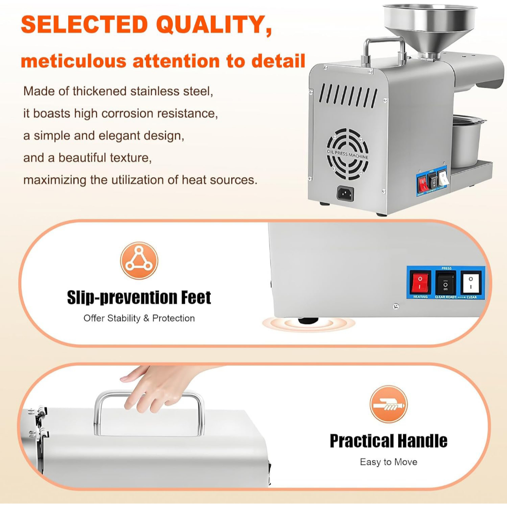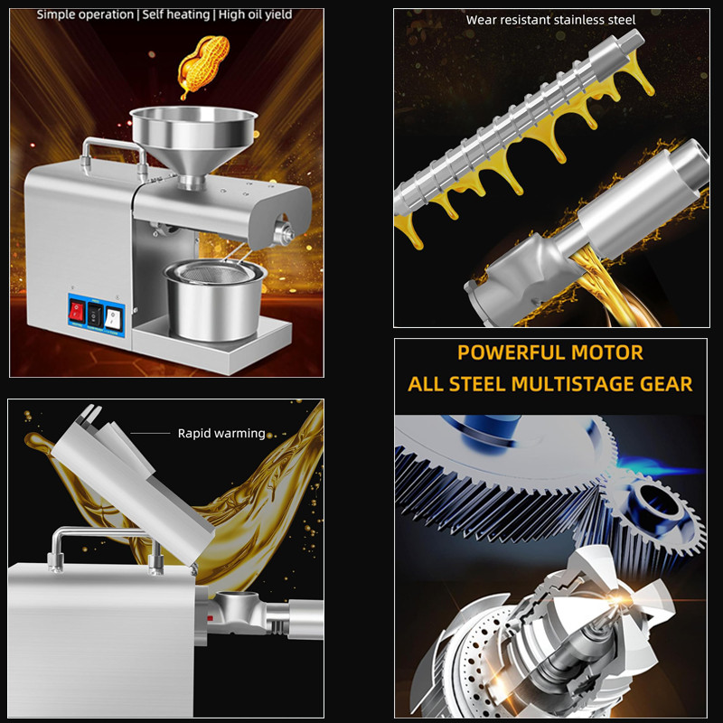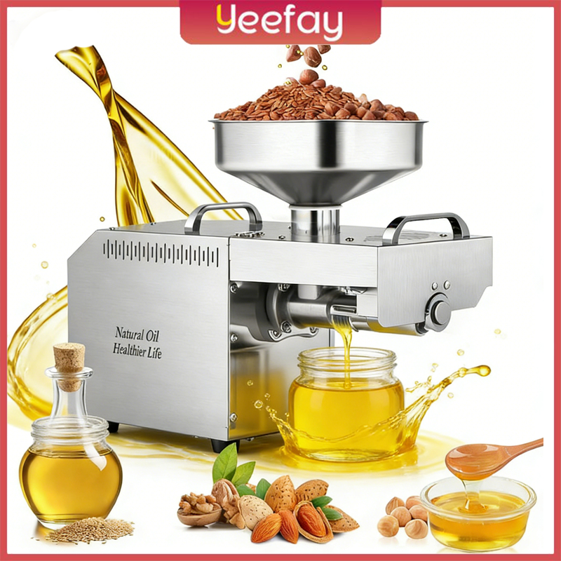 Mesin Press Oil Minyak Biji Bijian 700W Kacang Otomatis Mesin Penghasil Minyak Digital Stainless Steel Biji-bijian Tanpa Menggoreng Suhu Konstan Mesin Press Pemisahan Residu Minyak zjc
