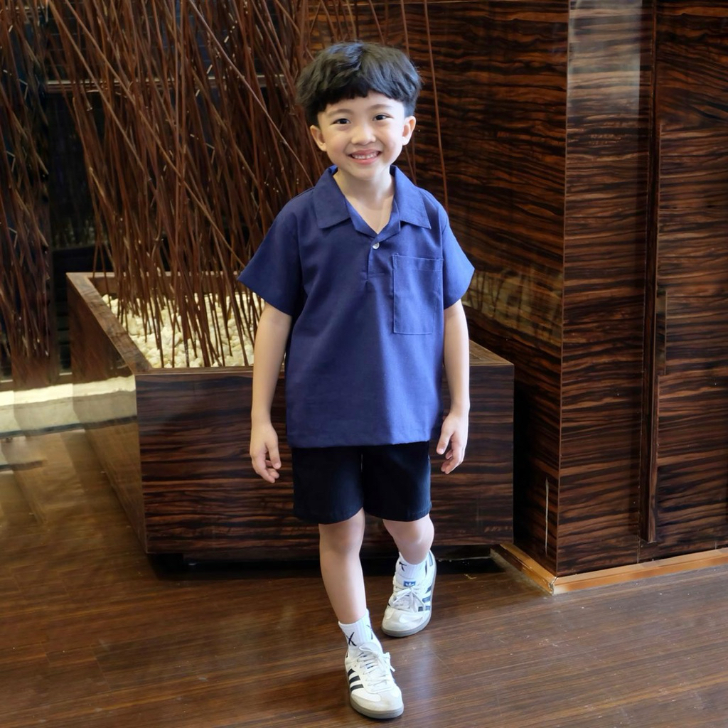 LOUI - Kemeja Atasan Linen Lengan Pendek Anak Laki laki