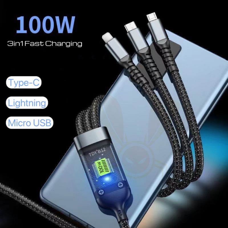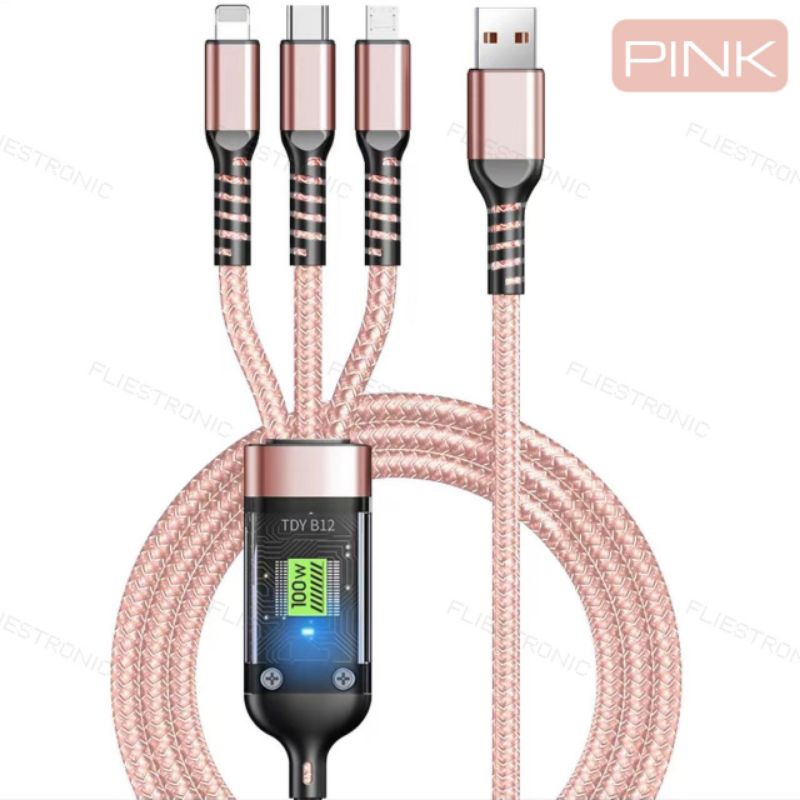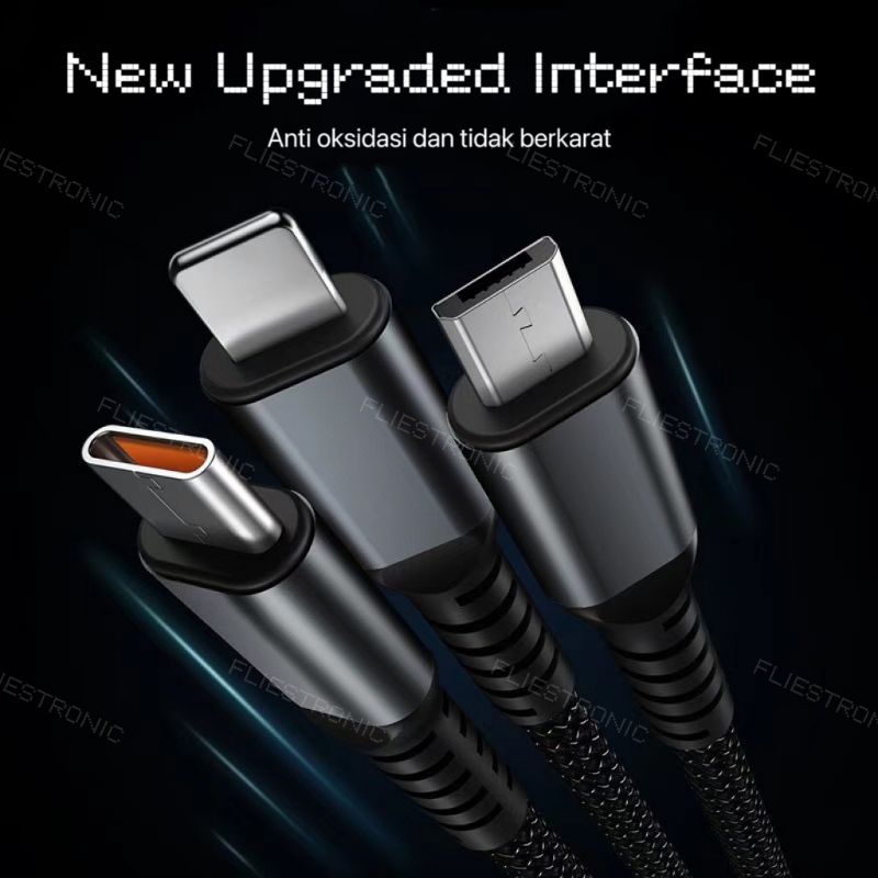 COD FLIESTRONIC Cable Charger 3in1 Fast Charging / Cable Type C, Lightning & USB/ Kabel Pengisi Daya