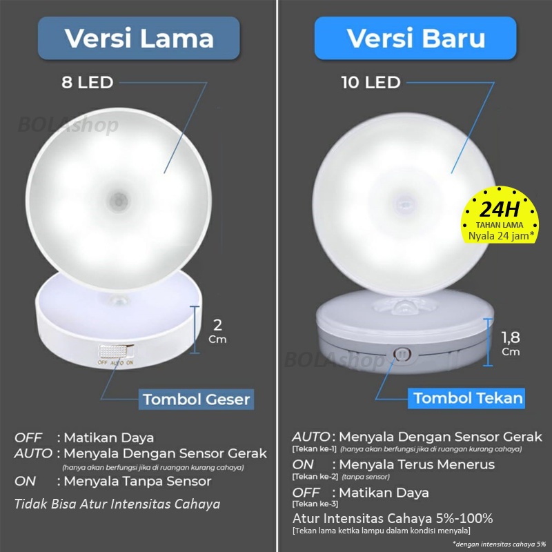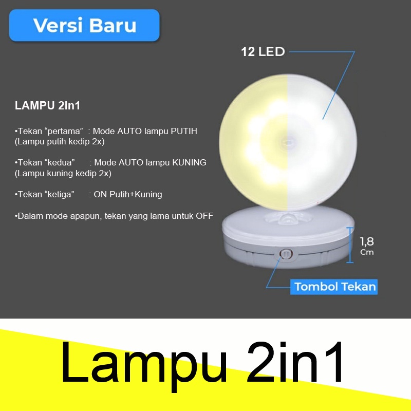 LAMPU TIDUR SENSOR GERAK LED LAMPU LEMARI TANGGA EMERGENCY