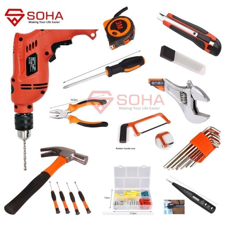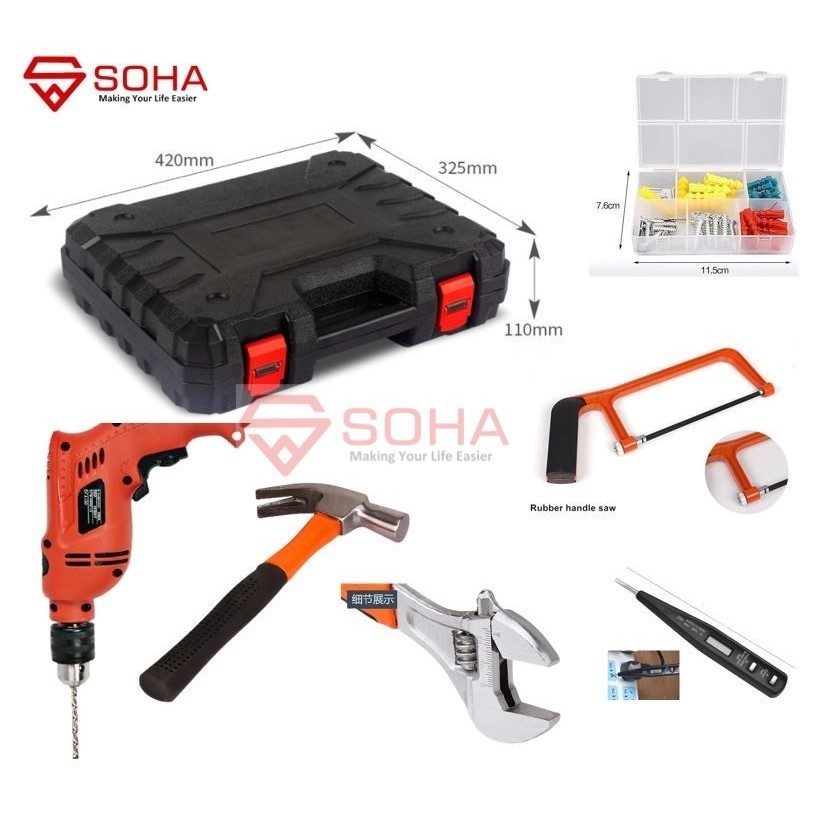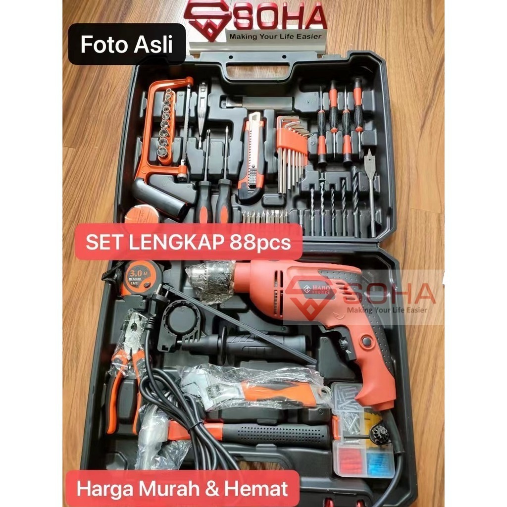 Perkakas 88 Pcs Ada Bor Listrik ART-039 Paket Lengkap Box Kotak Alat Perkakas Ada Mata Bor & Palu Obeng Tools Mekanik & Rumah Tangga Toolset Toolbox Simple