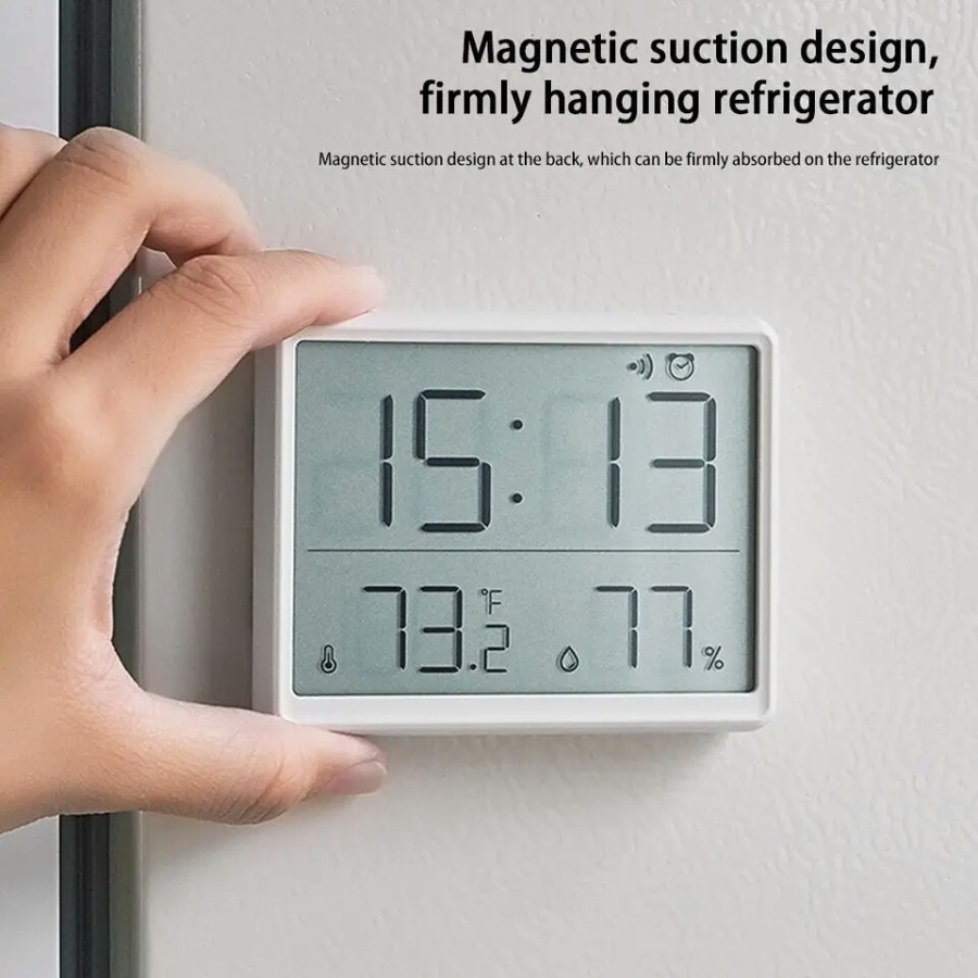 Jam Alarm Digital Mini Jam Elegan & Tempel Dinding Via Magnet Design Tipis Sederhana Elegant Fitur Alarm, Temperatur suhu & Kelembapan Ruangan JD-8218