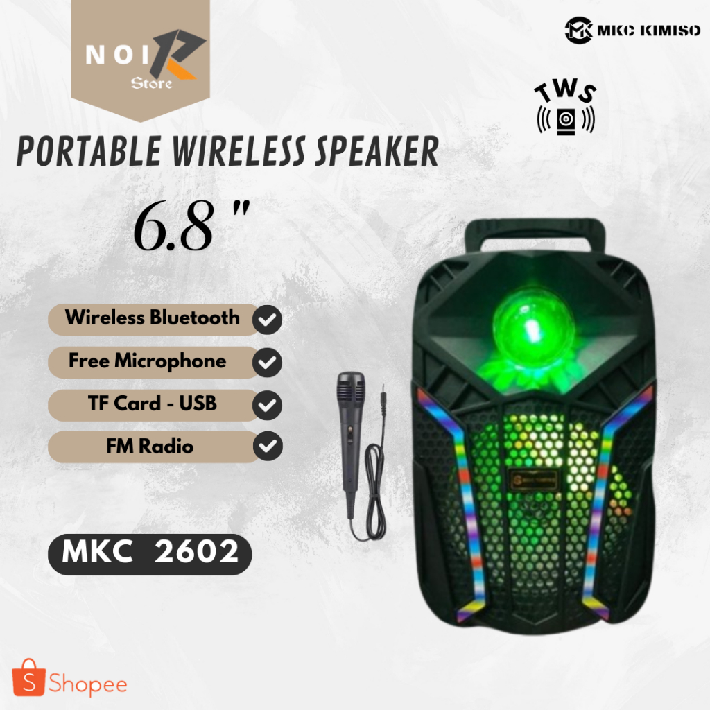 NOIR Speaker Bluetooth MKC 2602 Wireless 6.8 Inch Free Mic Party Light