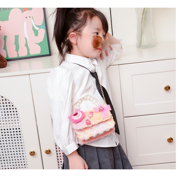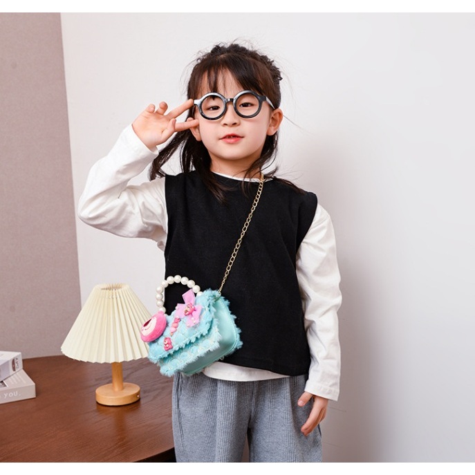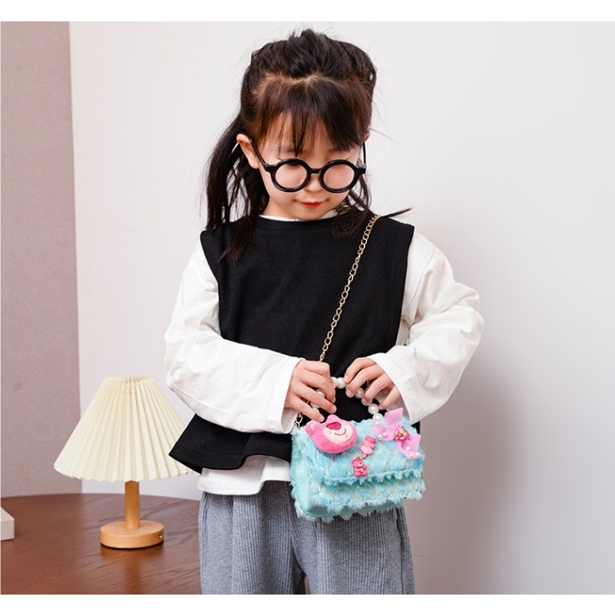 LOTSO BULU Tas Fashion Korea Anak Perempuan Selempang list pinggiran emas