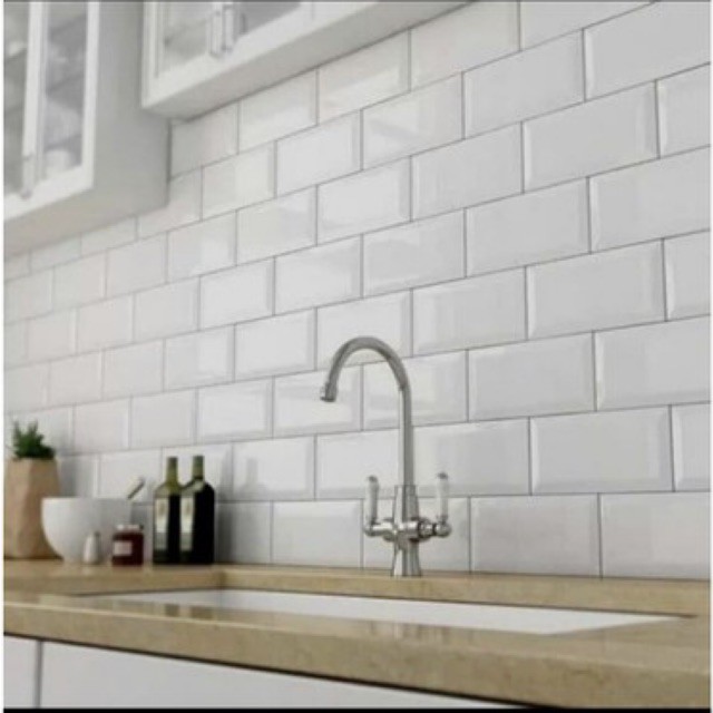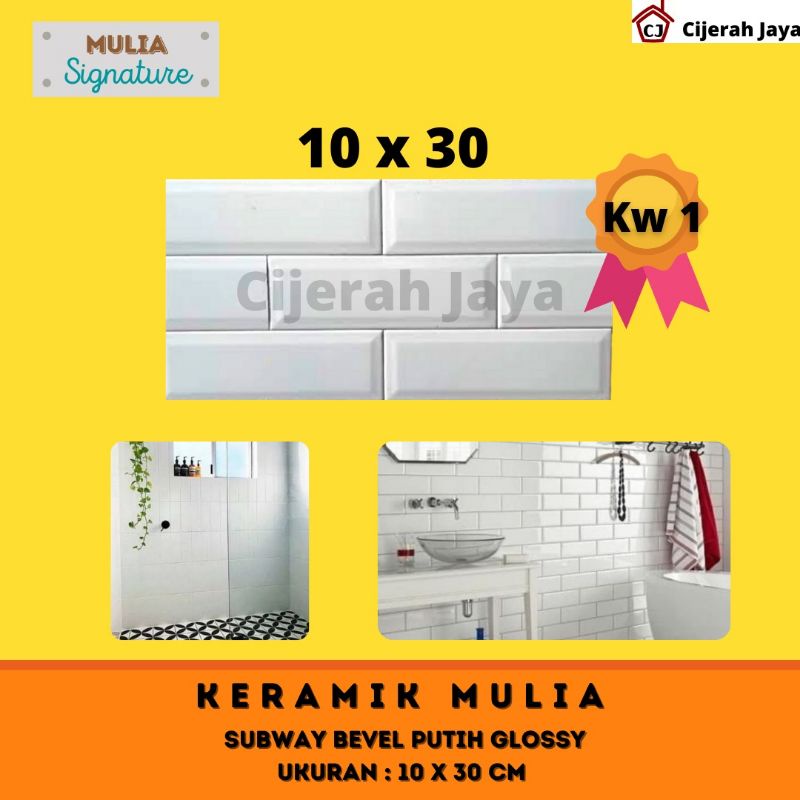 KERAMIK SUBWAY BATA BEVEL MULIA SIGNATURE METRO WHITE 10x20 GLOSSY KW1