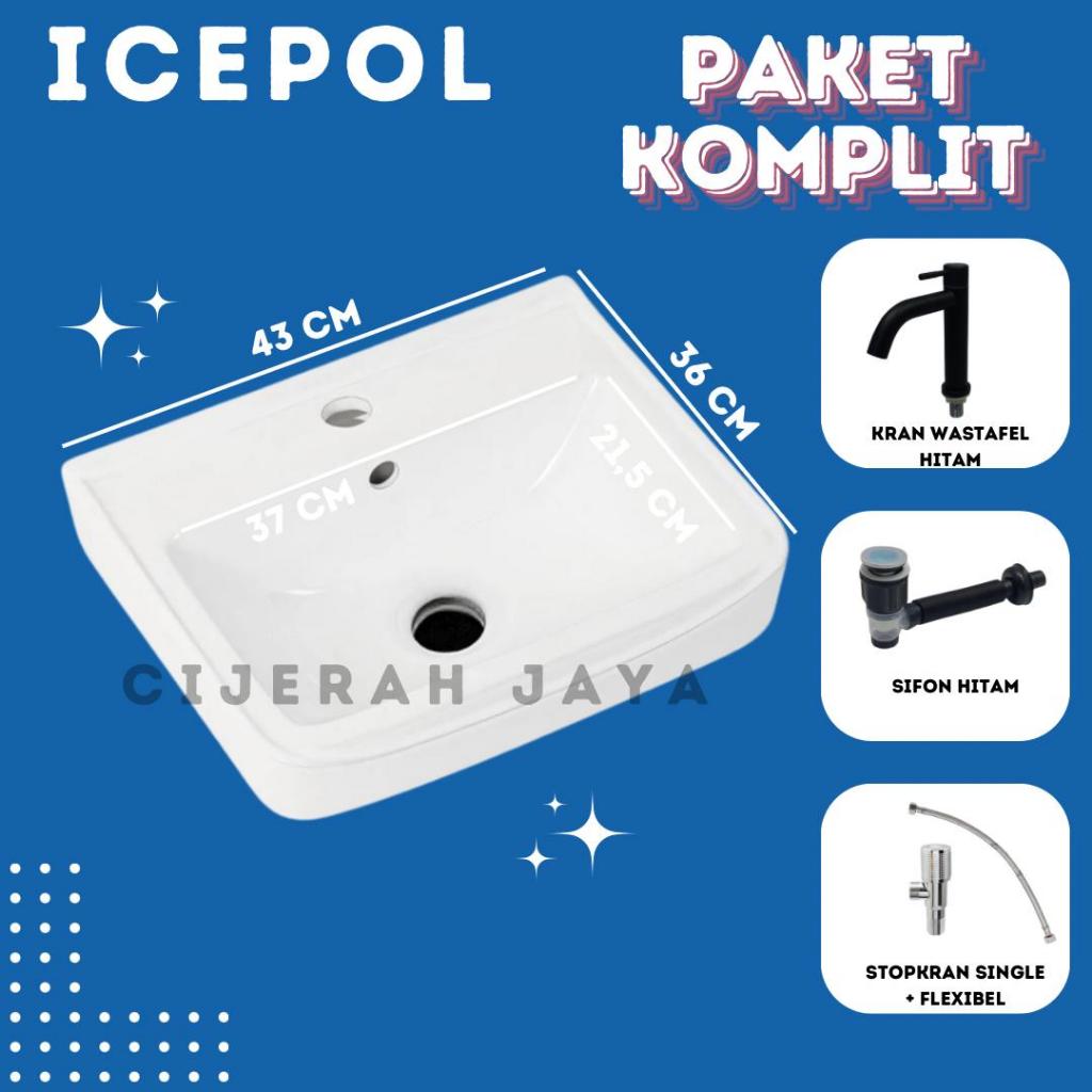 WASTAFEL GANTUNG SET KOTAK KOMPLIT ICEPOL IC180 IC 180 IC-180 / WASTAFEL WASHTAFEL CUCI TANGAN KERAMIK ICEPOL PREMIUM