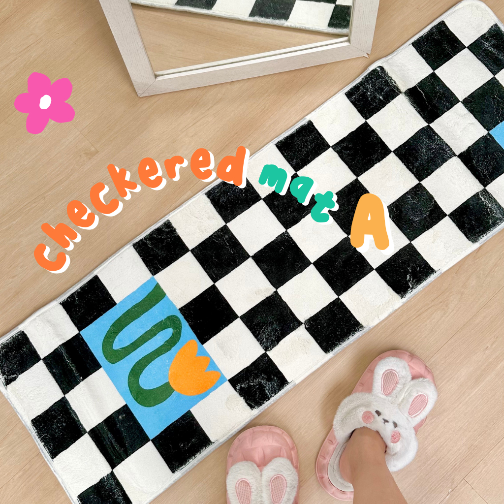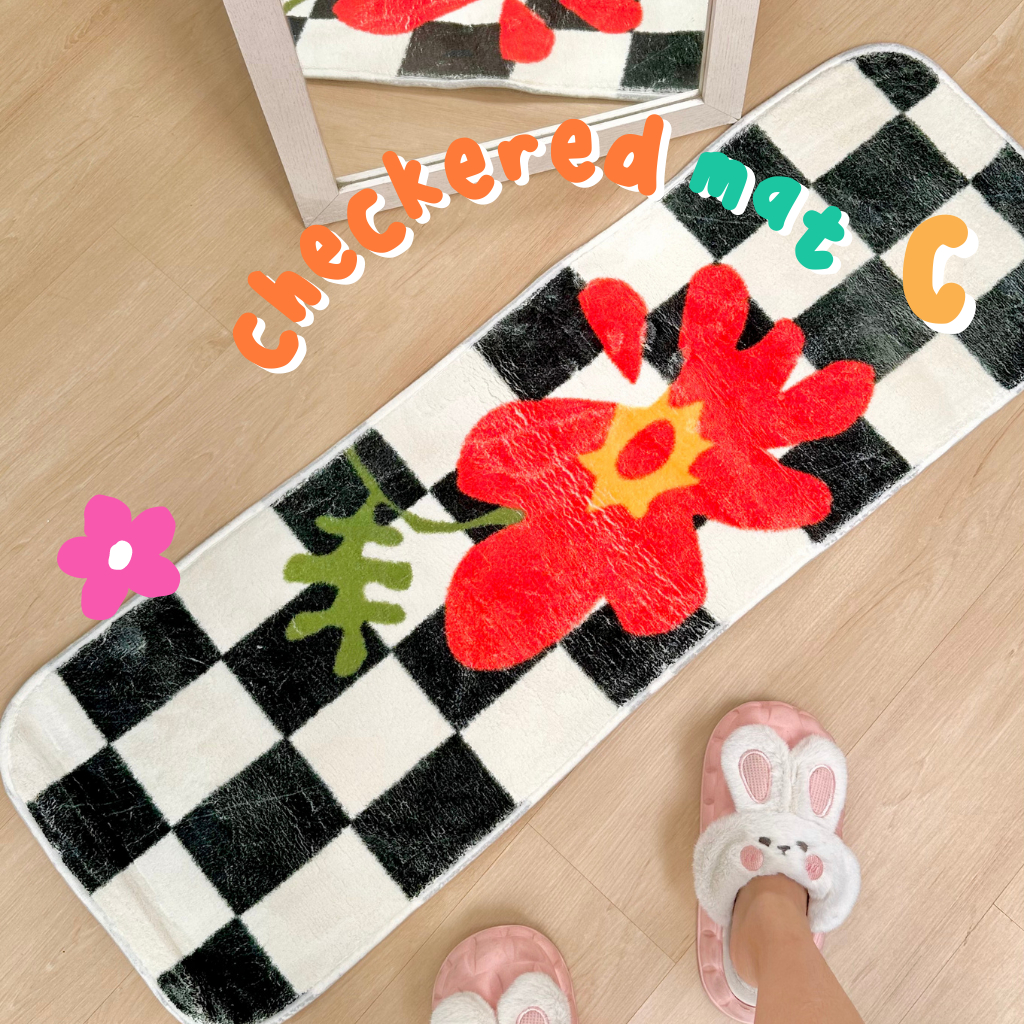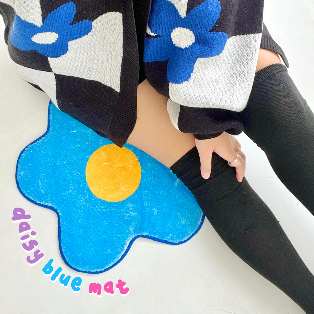 Checkered Mat Karpet Estetik Kamar Blue Daisy Aesthetic Korea theCOCO. Homewear
