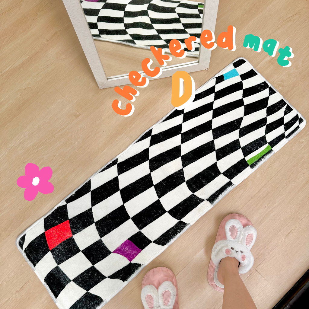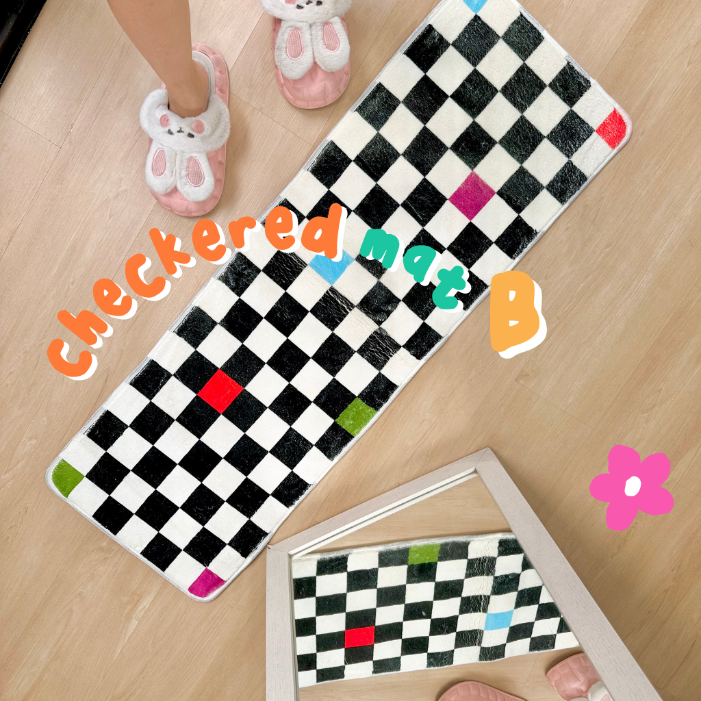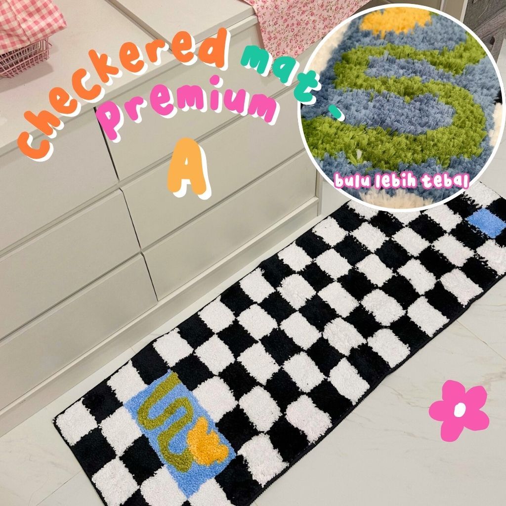Checkered Mat Karpet Estetik Kamar Blue Daisy Aesthetic Korea theCOCO. Homewear