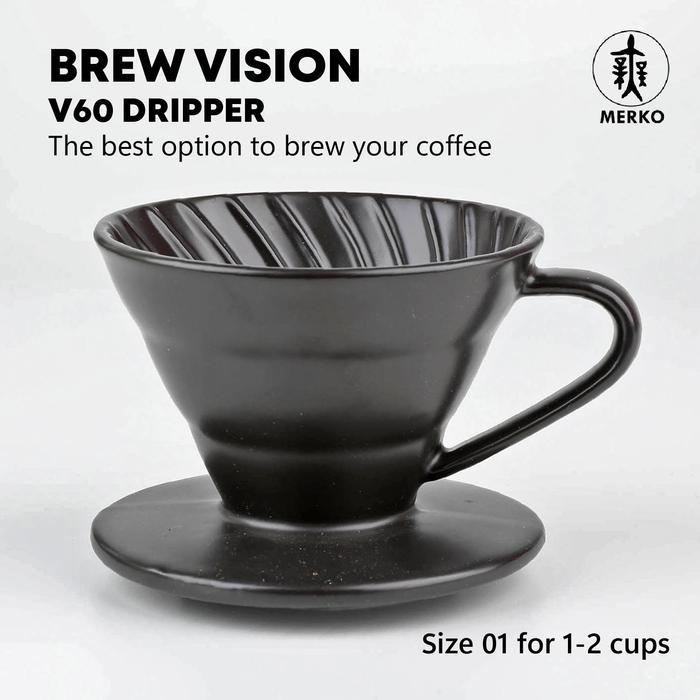 Nespreso - Merko Brew Vision V60 Ceramic Dripper Matt Black 01 (1-2 Cups) Alat Seduh Kopi Manual