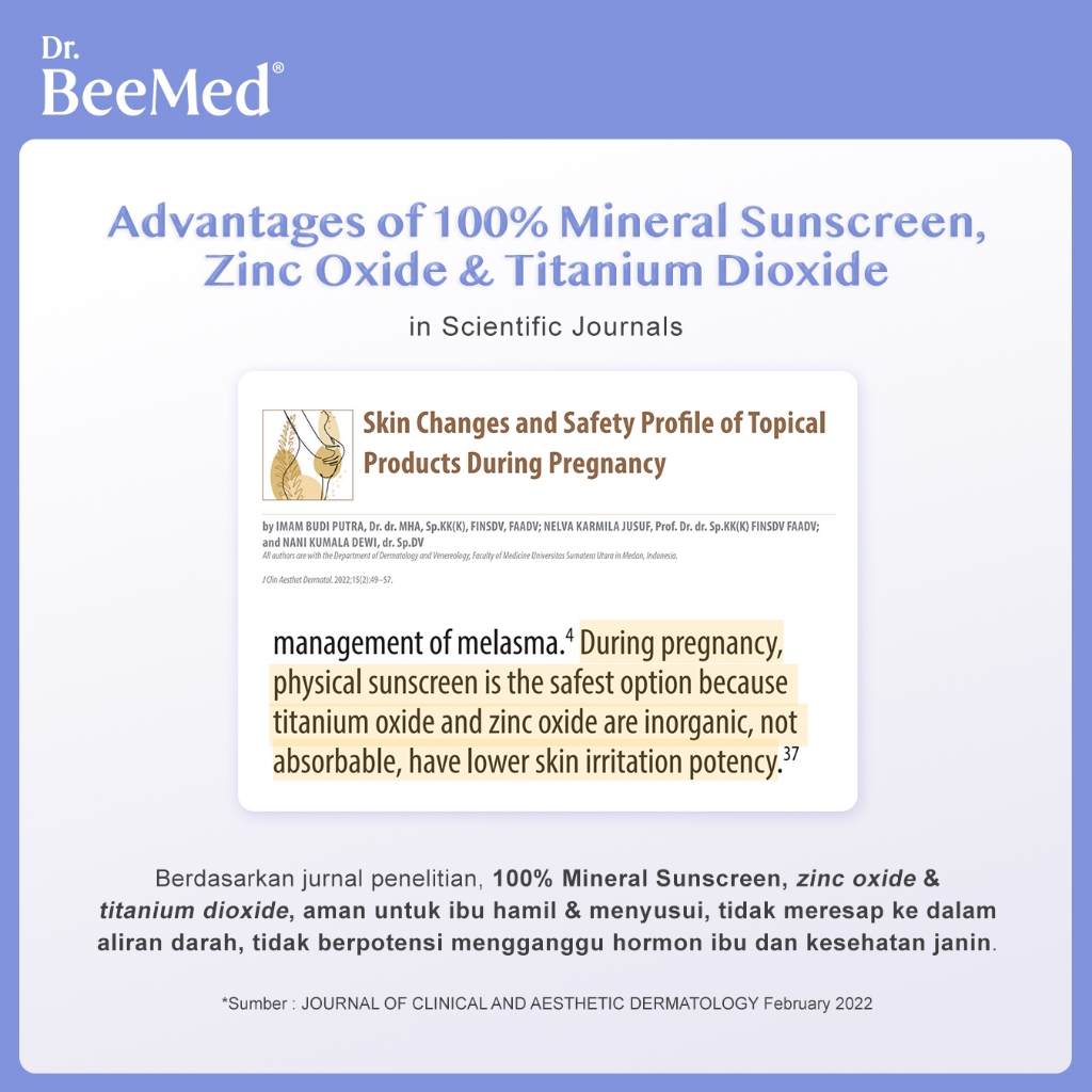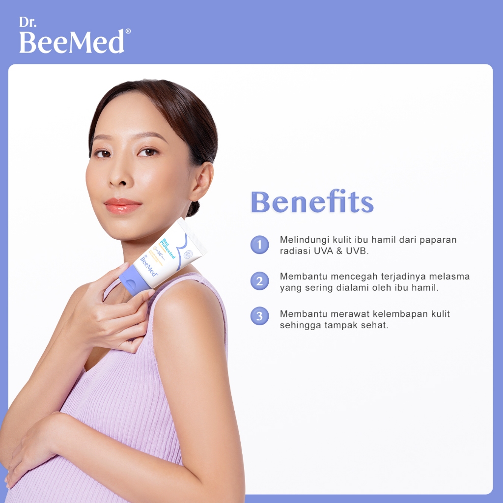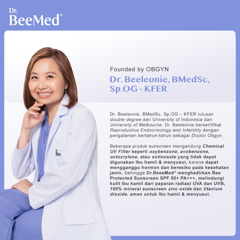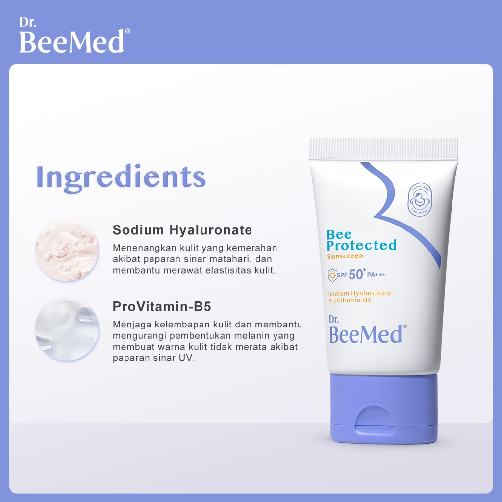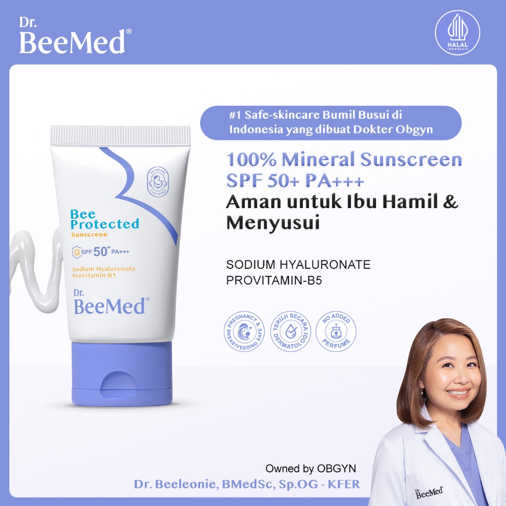 Dr.BeeMed Bee Protected Sunscreen SPF 50 PA+++ - 100% Mineral Sunscreen Pelembap Kulit Wajah Aman untuk Ibu Hamil & Menyusui BPOM