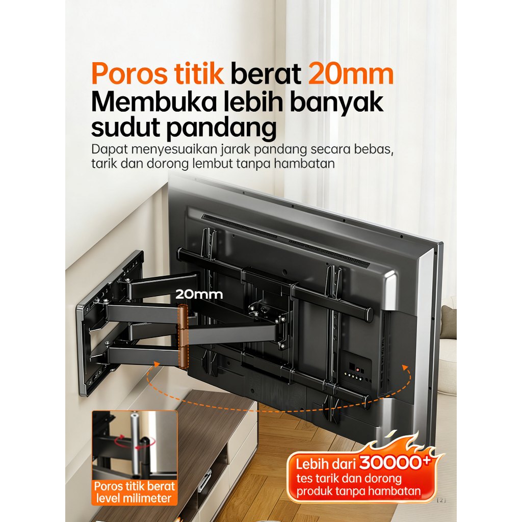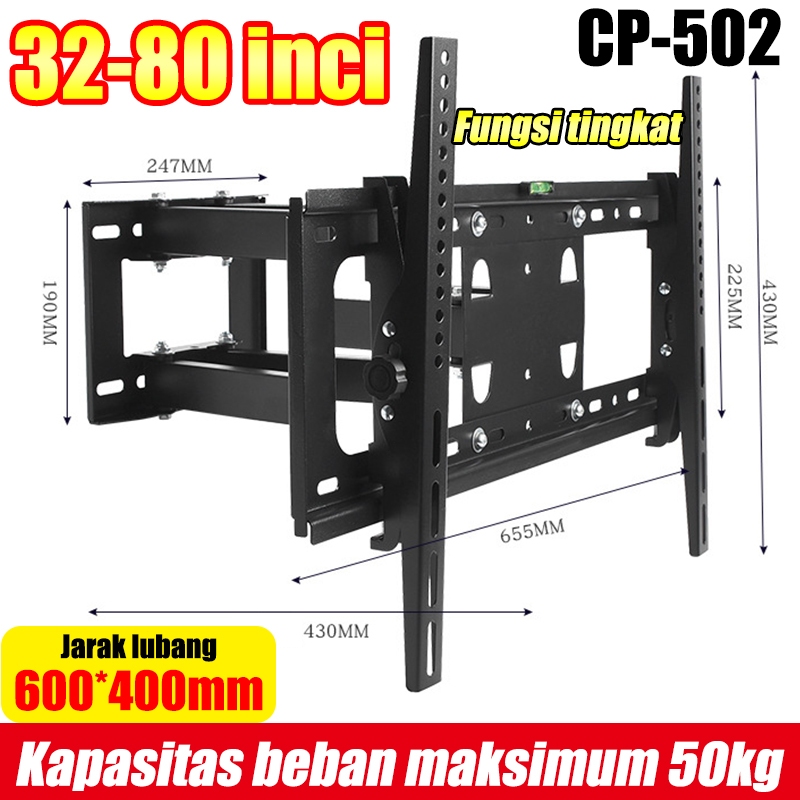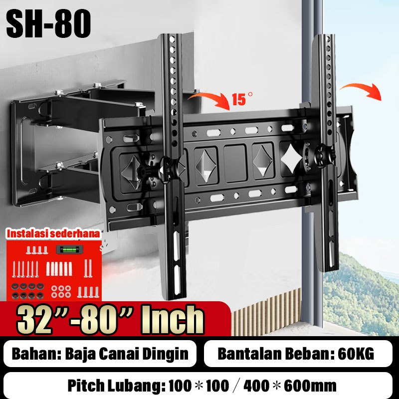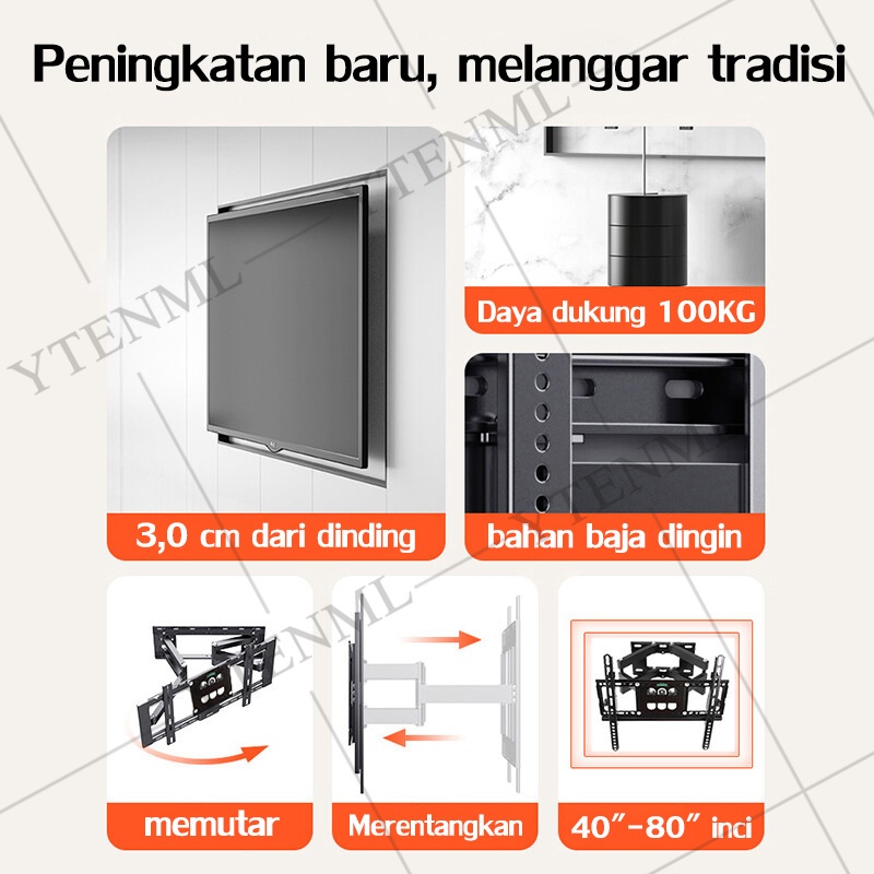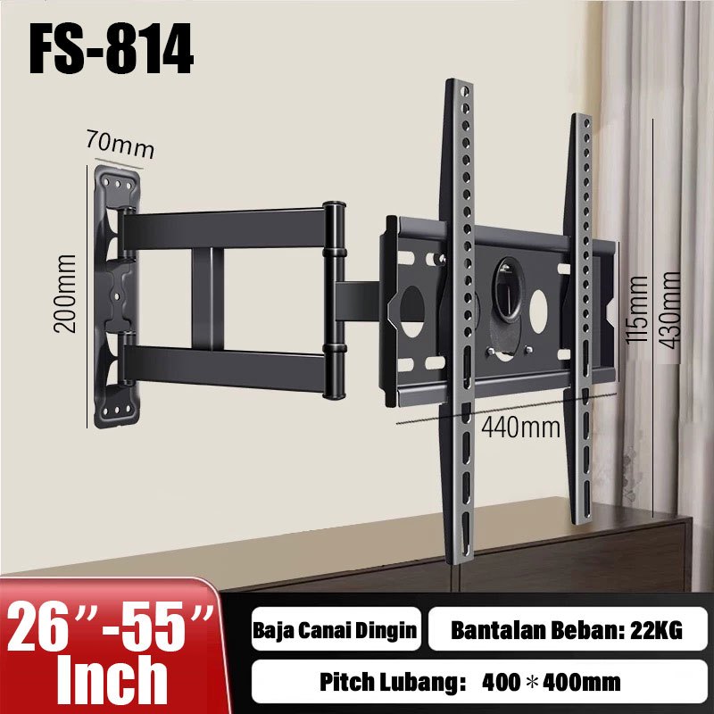 bracket tv 32/43/50/55 inch bracket tv standing 360° putar bracket teleskopik Full Motion Swivel Arm untuk Televisi, Smart TV, LED LCD TV, Monitor Layar dengan Kapasitas hingga 60 Kg