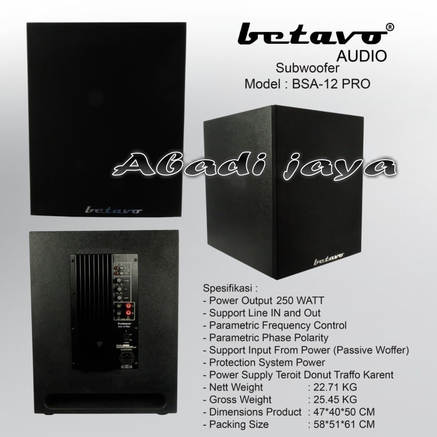 SUBWOOFER AKTIF BETAVO BSA12 PRO / BSA12PRO / BSA 12PRO 12INCH