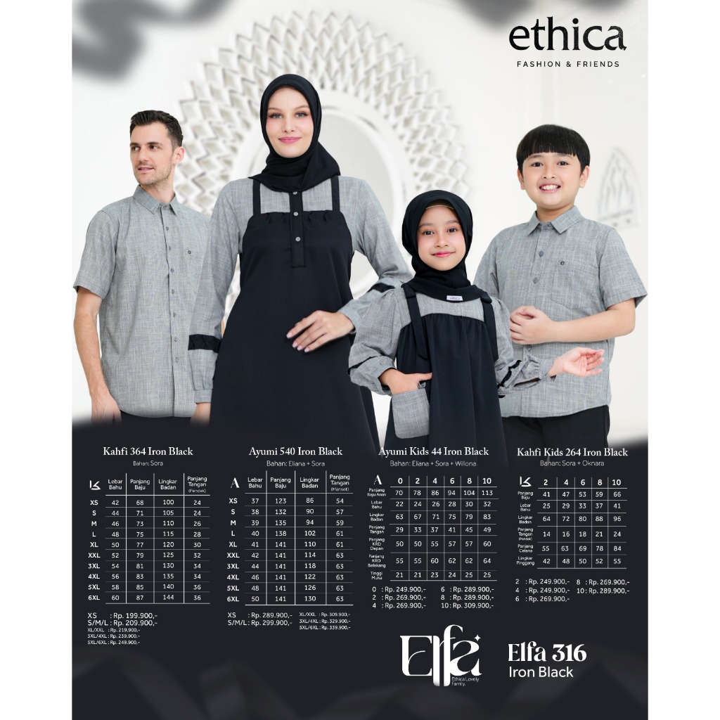 SARIMBIT TERBARU ETHICA ELFA 316 IRON BLACK /BAJU LEBARA /GAMIS /KOKO /COD