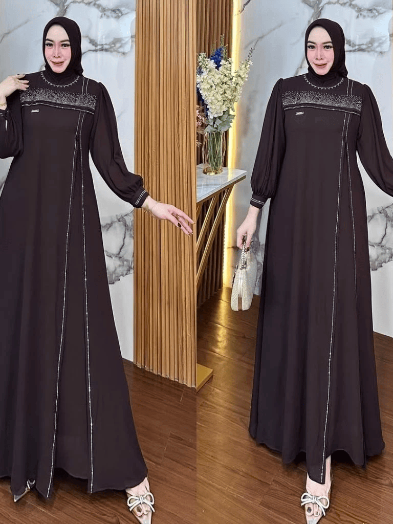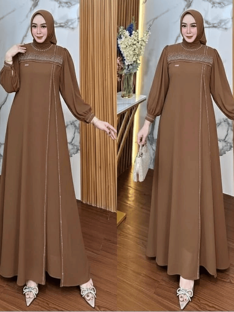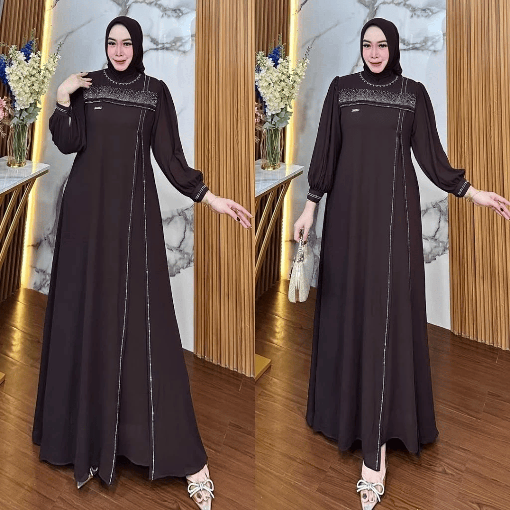 Gamis Terbaru 2026 Kondangan Rahma Dress Wanita Muslim Kekinian Dress Elegant Simple Kondangan Terkini Baju Gamis Lebaran Mahogany Trend