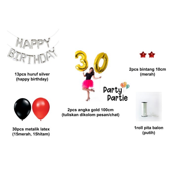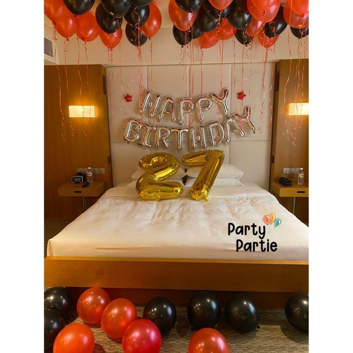 [Paket] Red & Black Decoration Birthday Balloon Party