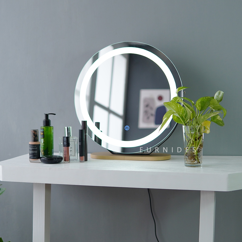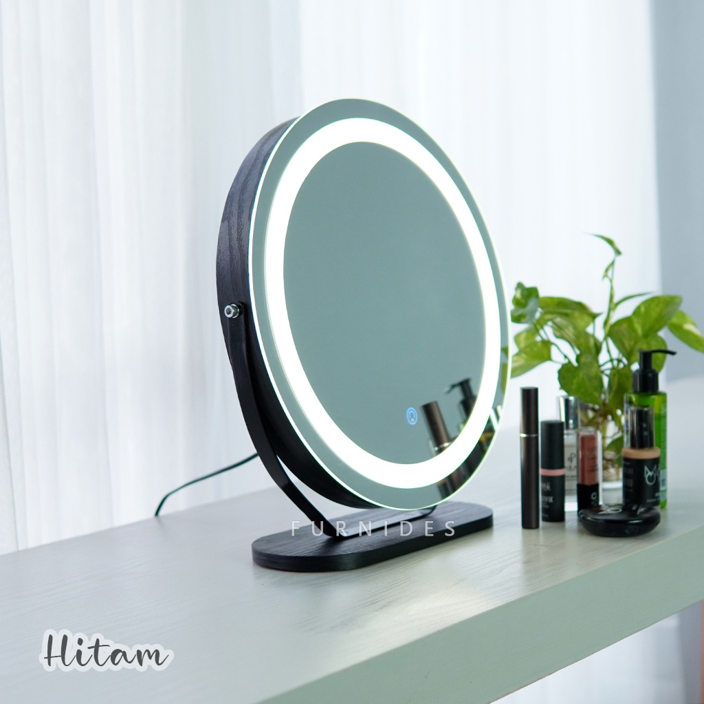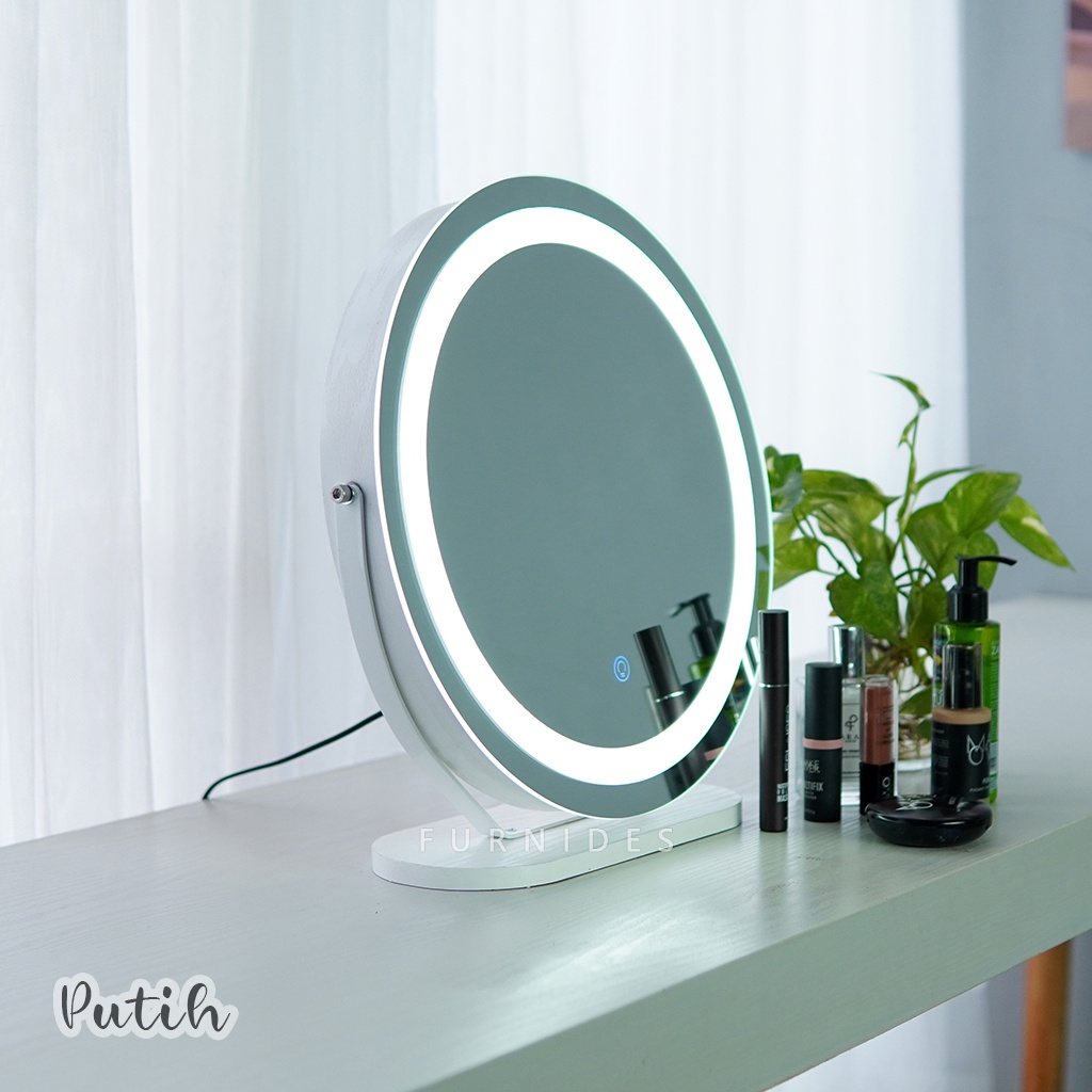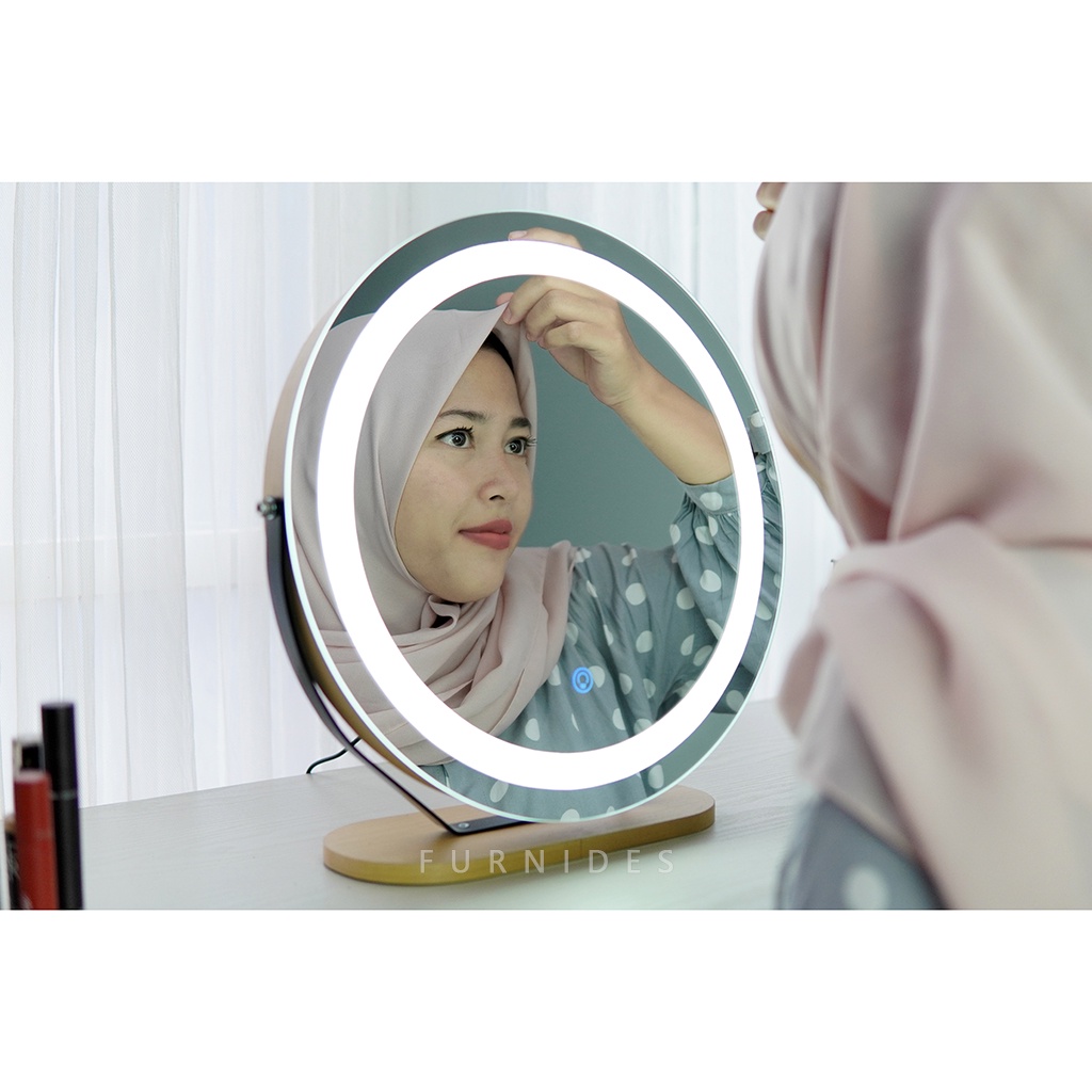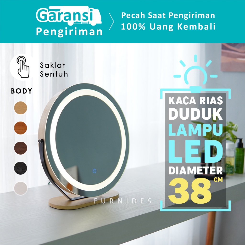 Cermin Rias Bulat | Make Up Duduk Lampu LED Diemeter 38 cm