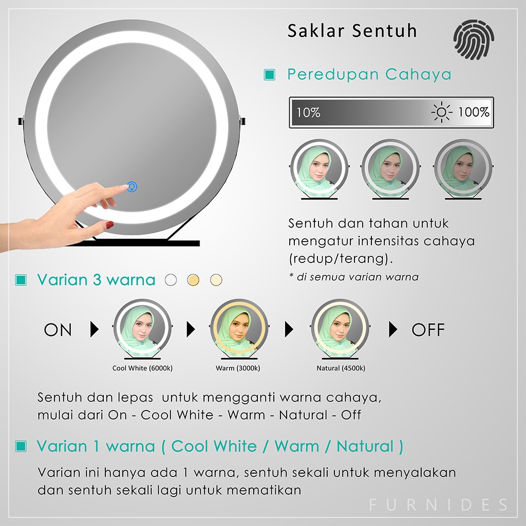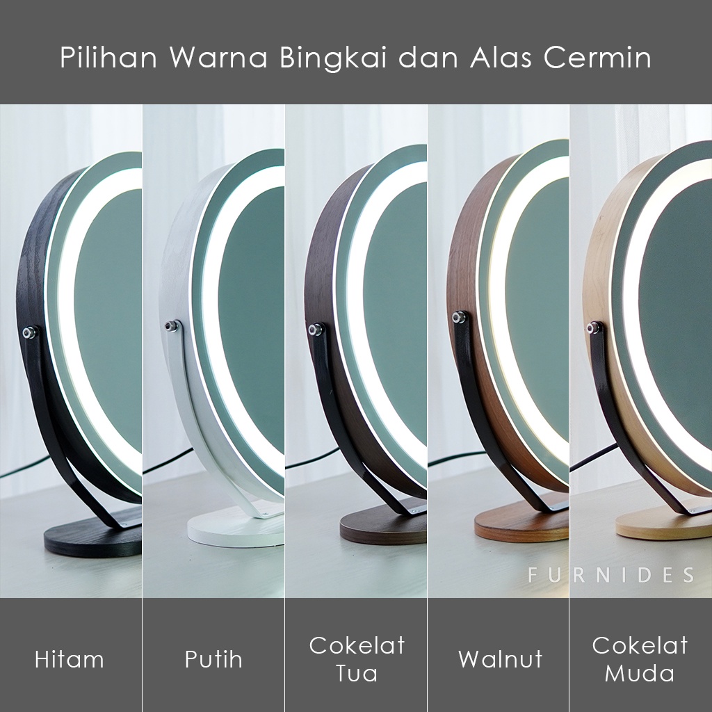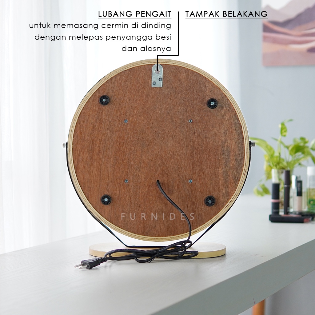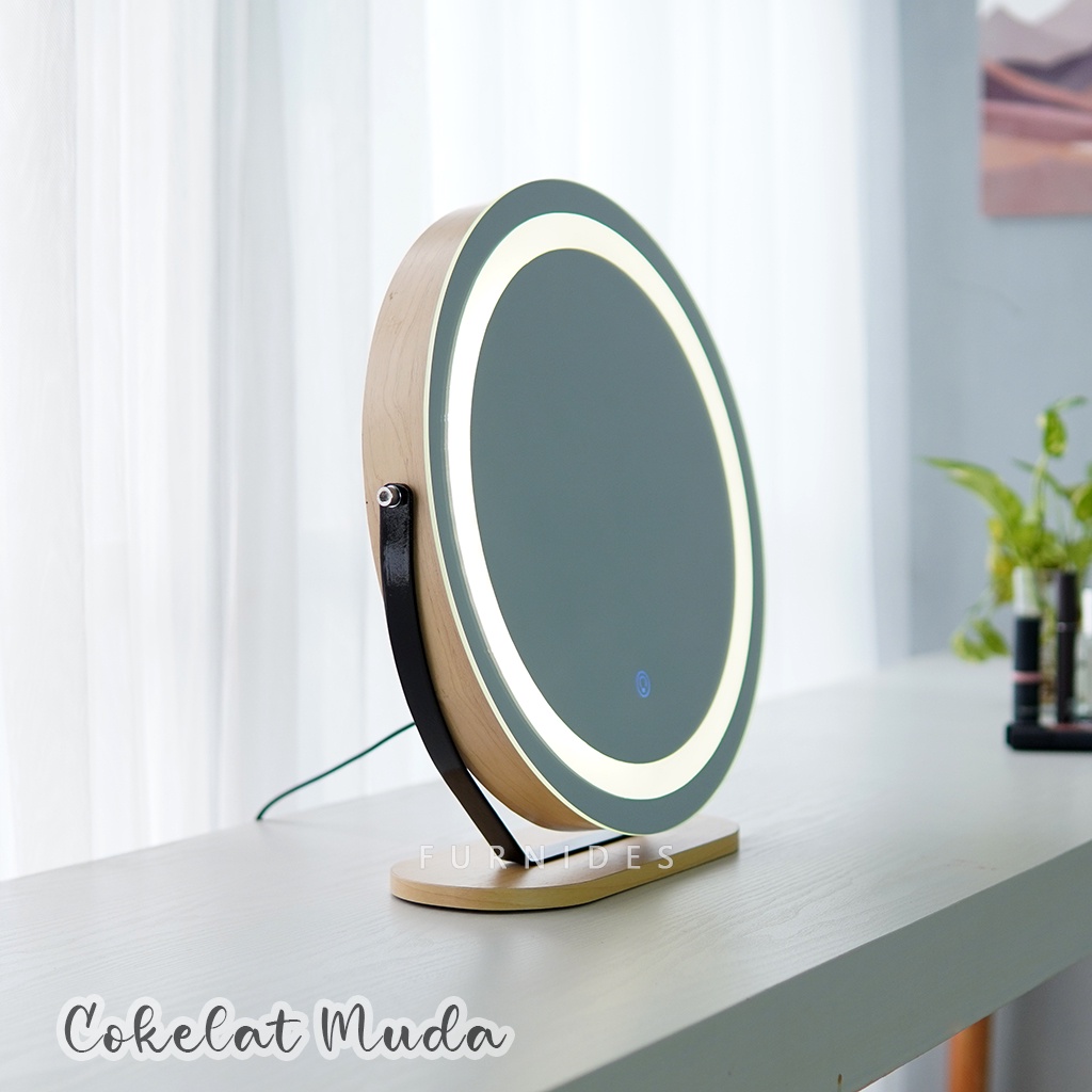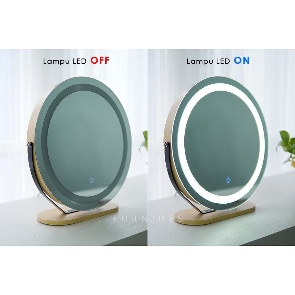 Cermin Rias Bulat | Make Up Duduk Lampu LED Diemeter 38 cm