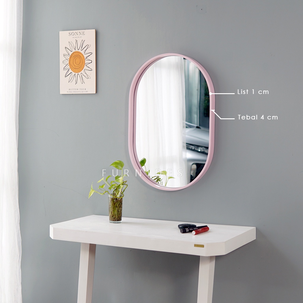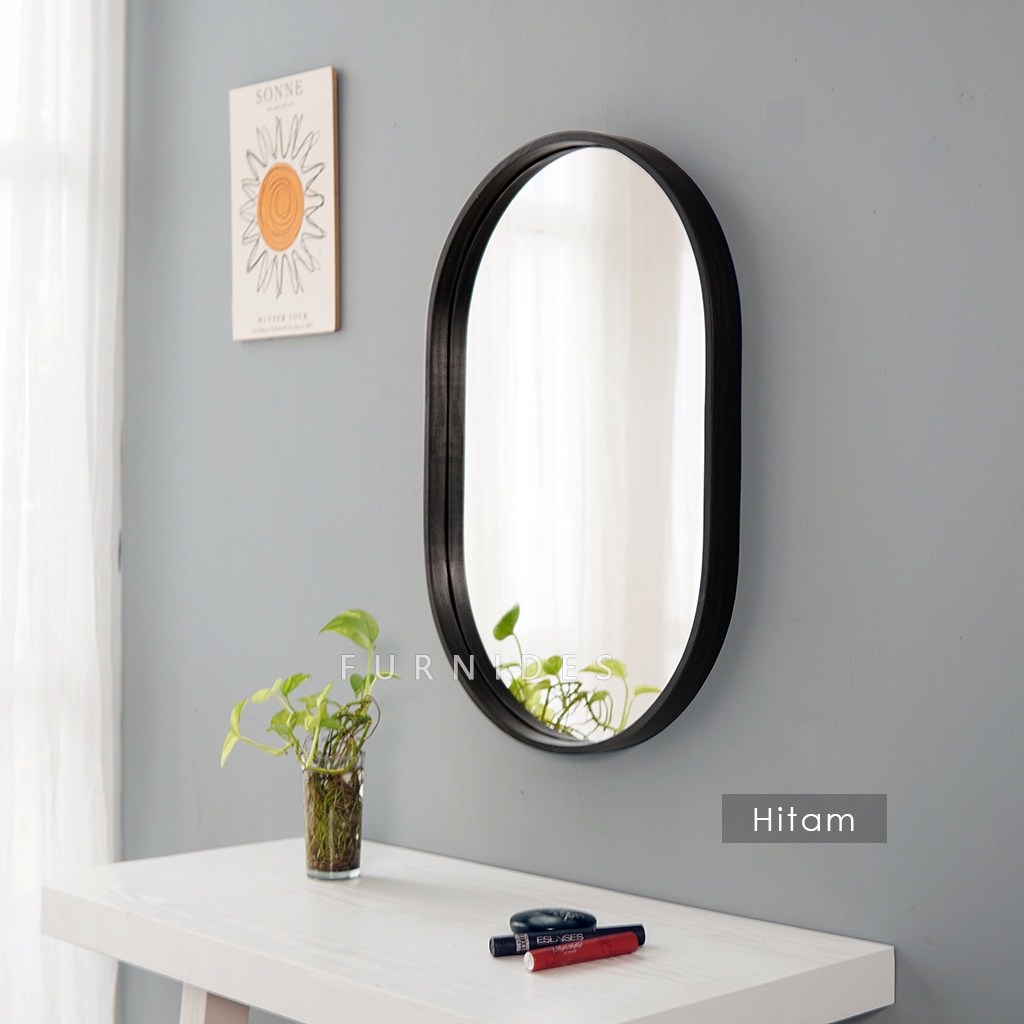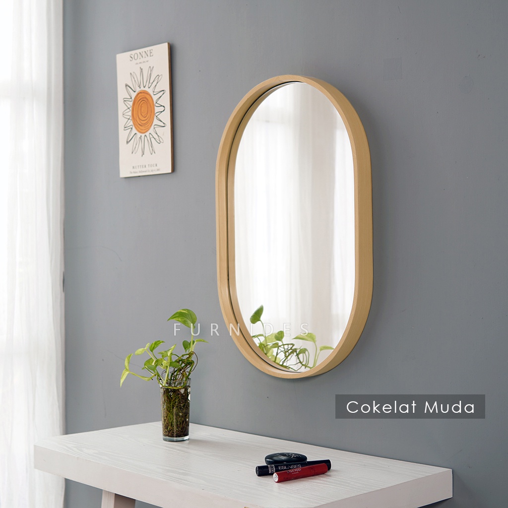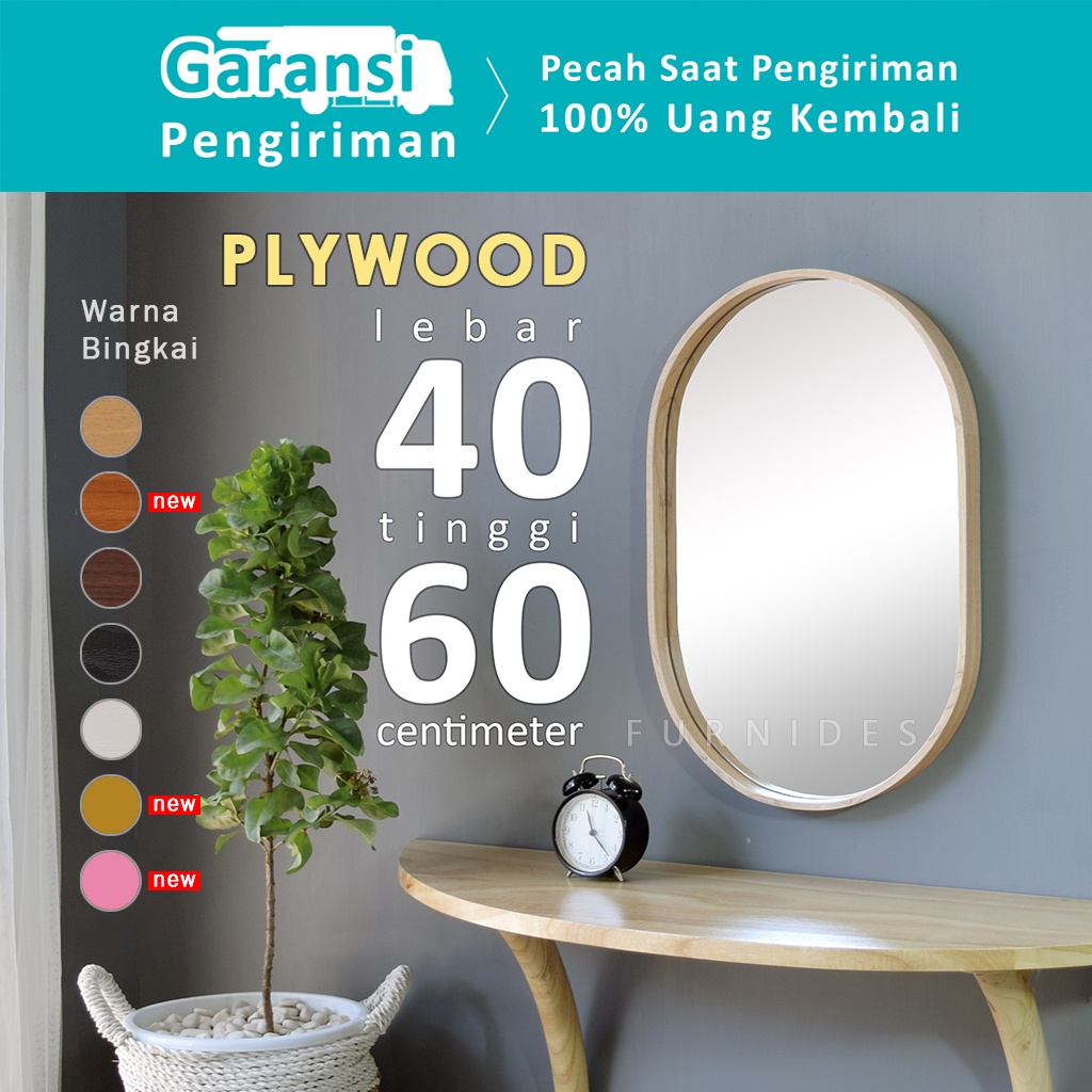 Cermin Oval 40x60 cm | Frame PLYWOOD Motif Kayu