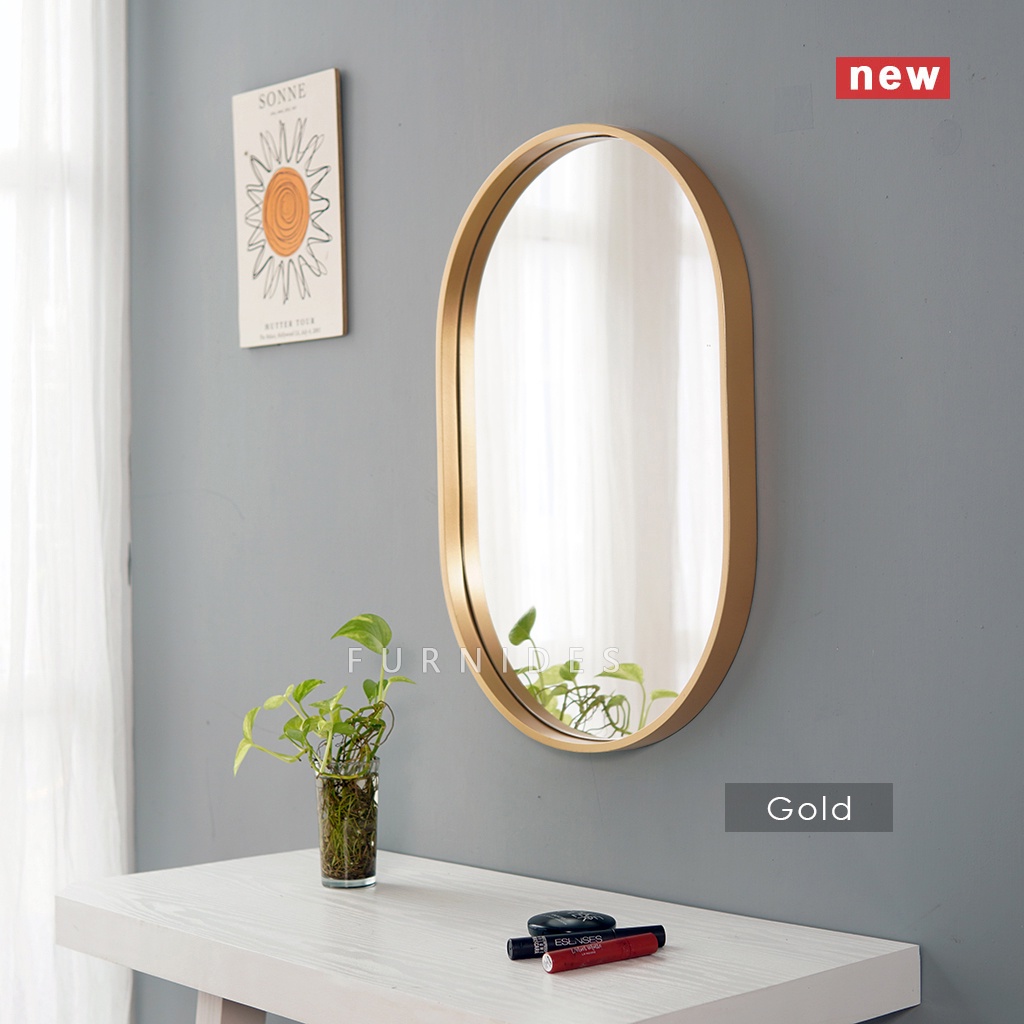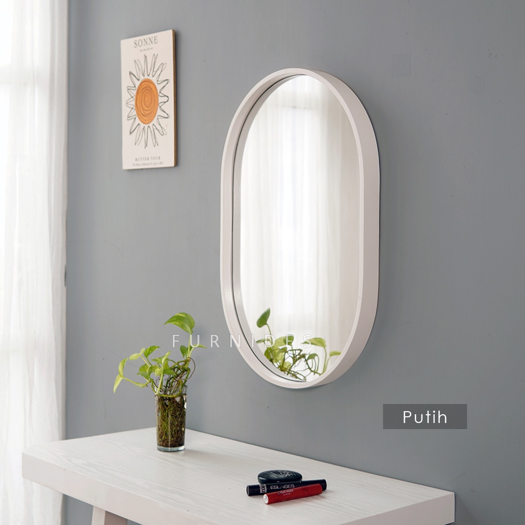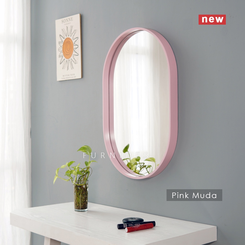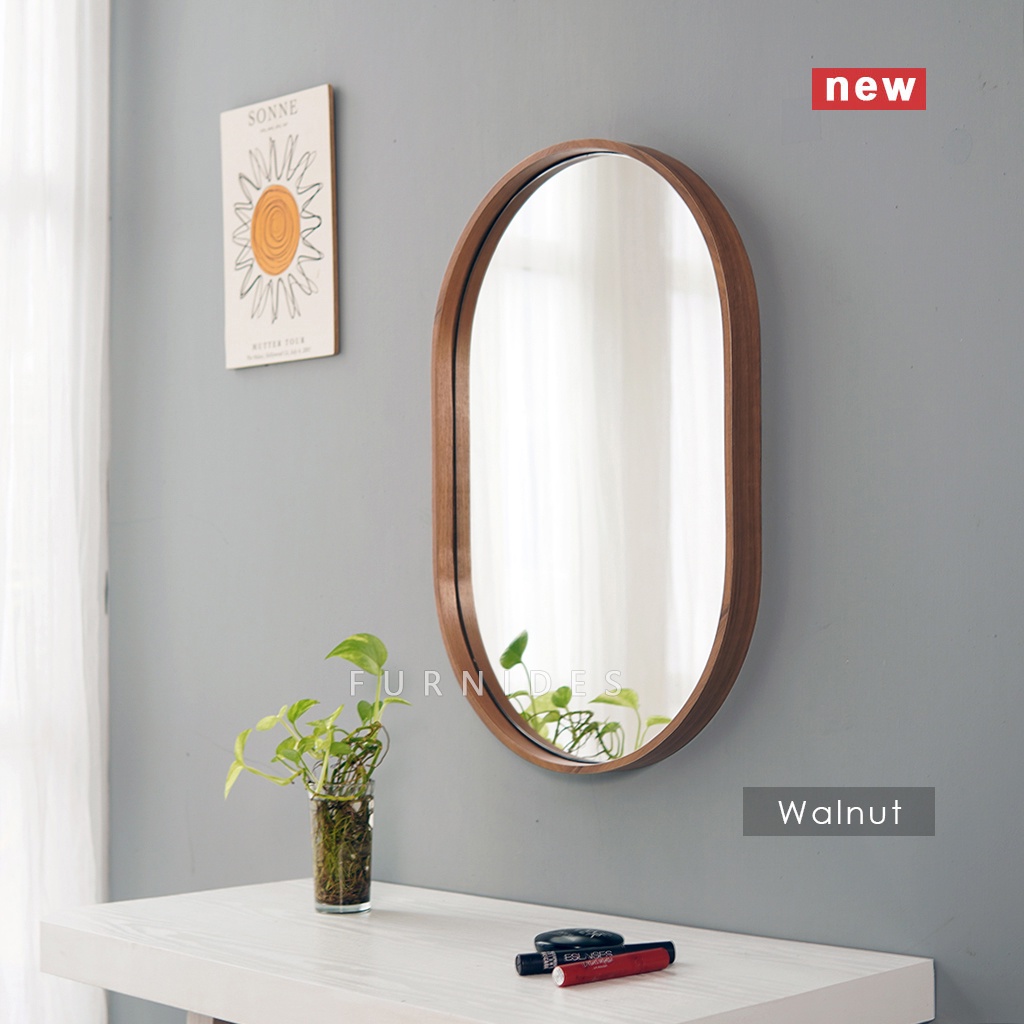 Cermin Oval 40x60 cm | Frame PLYWOOD Motif Kayu