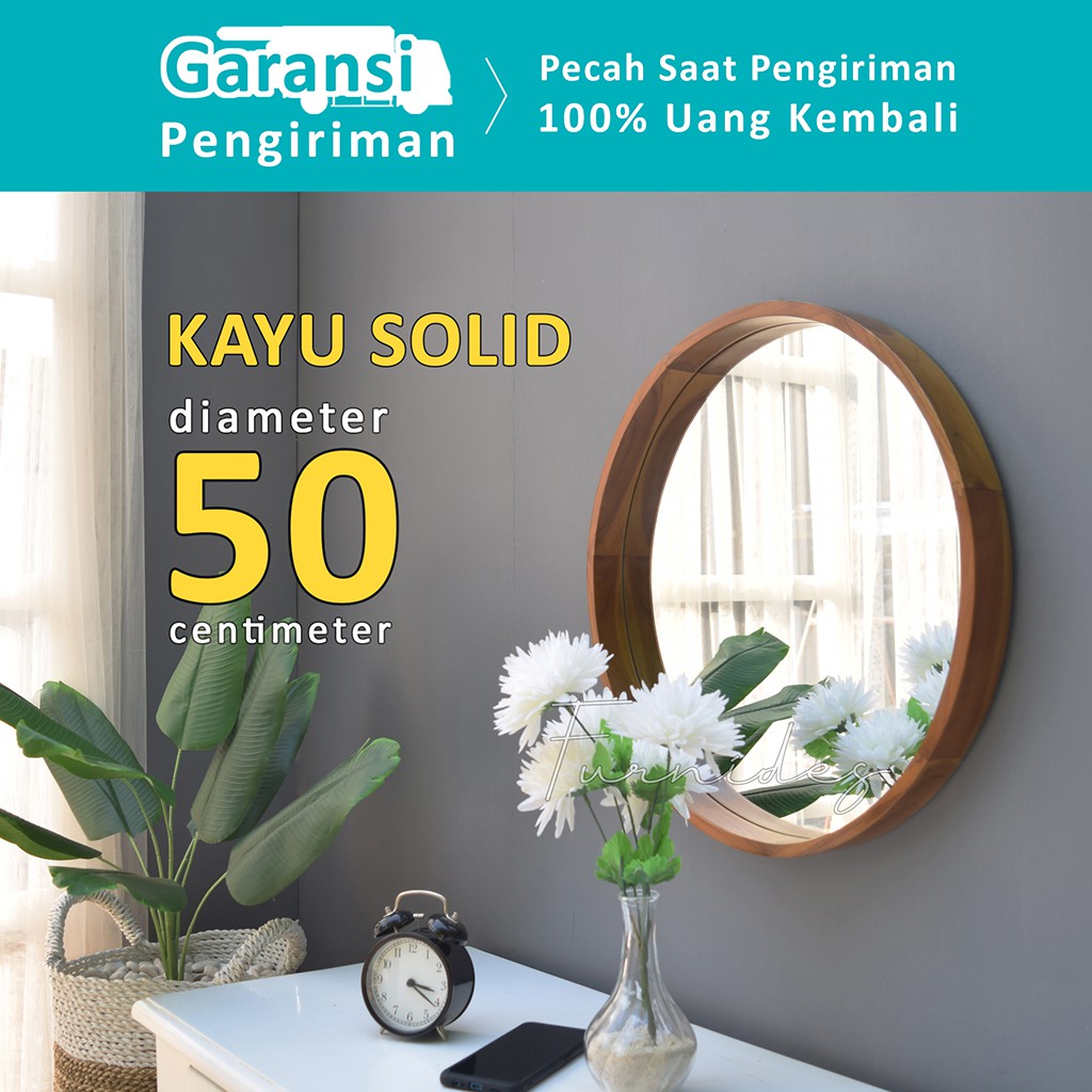 Cermin Bulat Diameter 50 cm | Frame KAYU SOLID