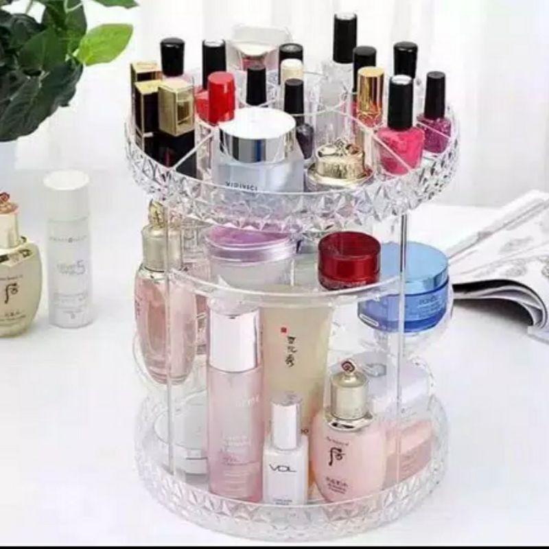 Rak kosmetik acrylic putar 360 derajat ukuran besar