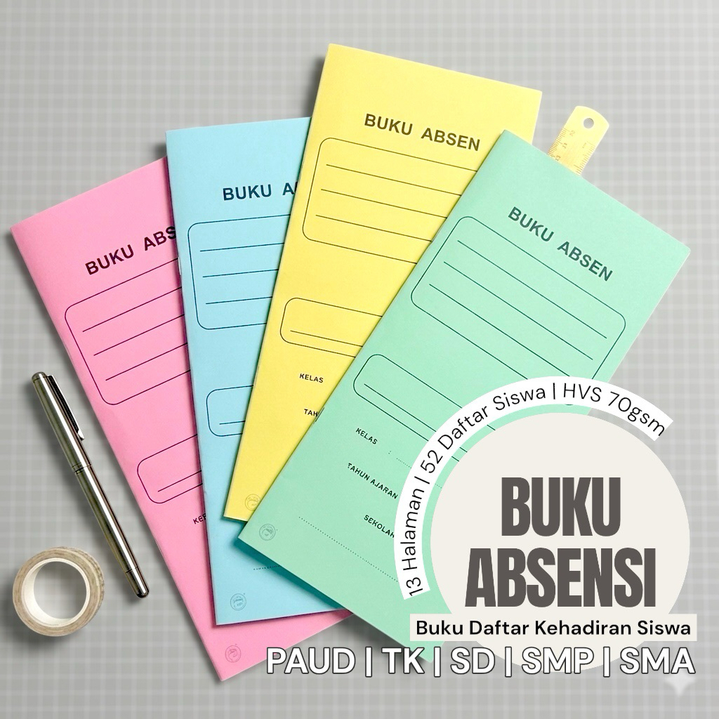 BUKU DAFTAR ABSEN SISWA (Absensi) | Buku Kehadiran Pelajar - Buku Absensi Kelas - Hingga 52 Nama Siswa (13 Halaman)