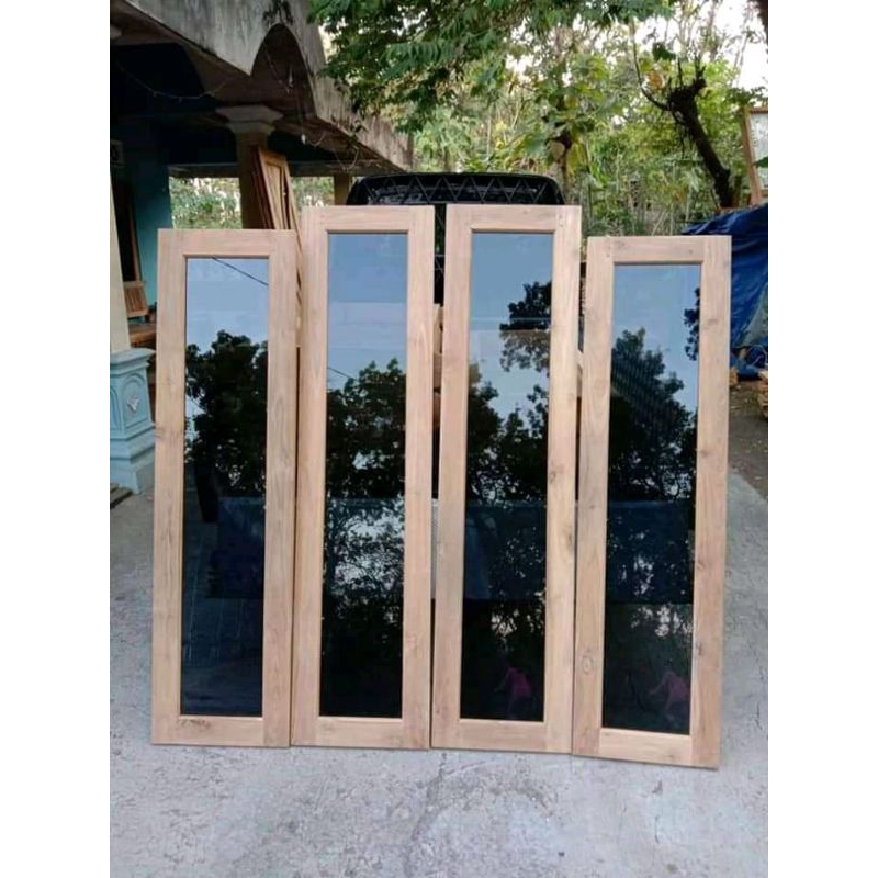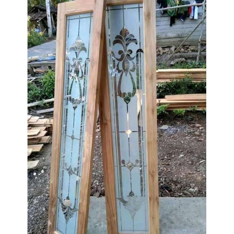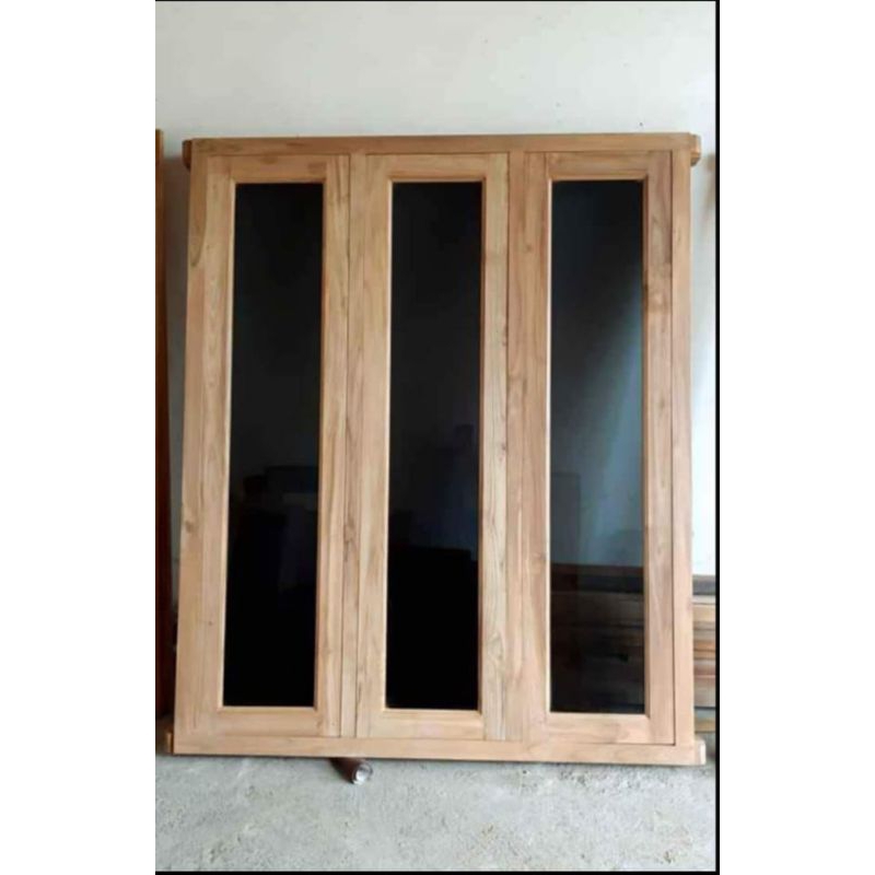 jendela kayu jati kaca hitam kaca putih kaca hias
