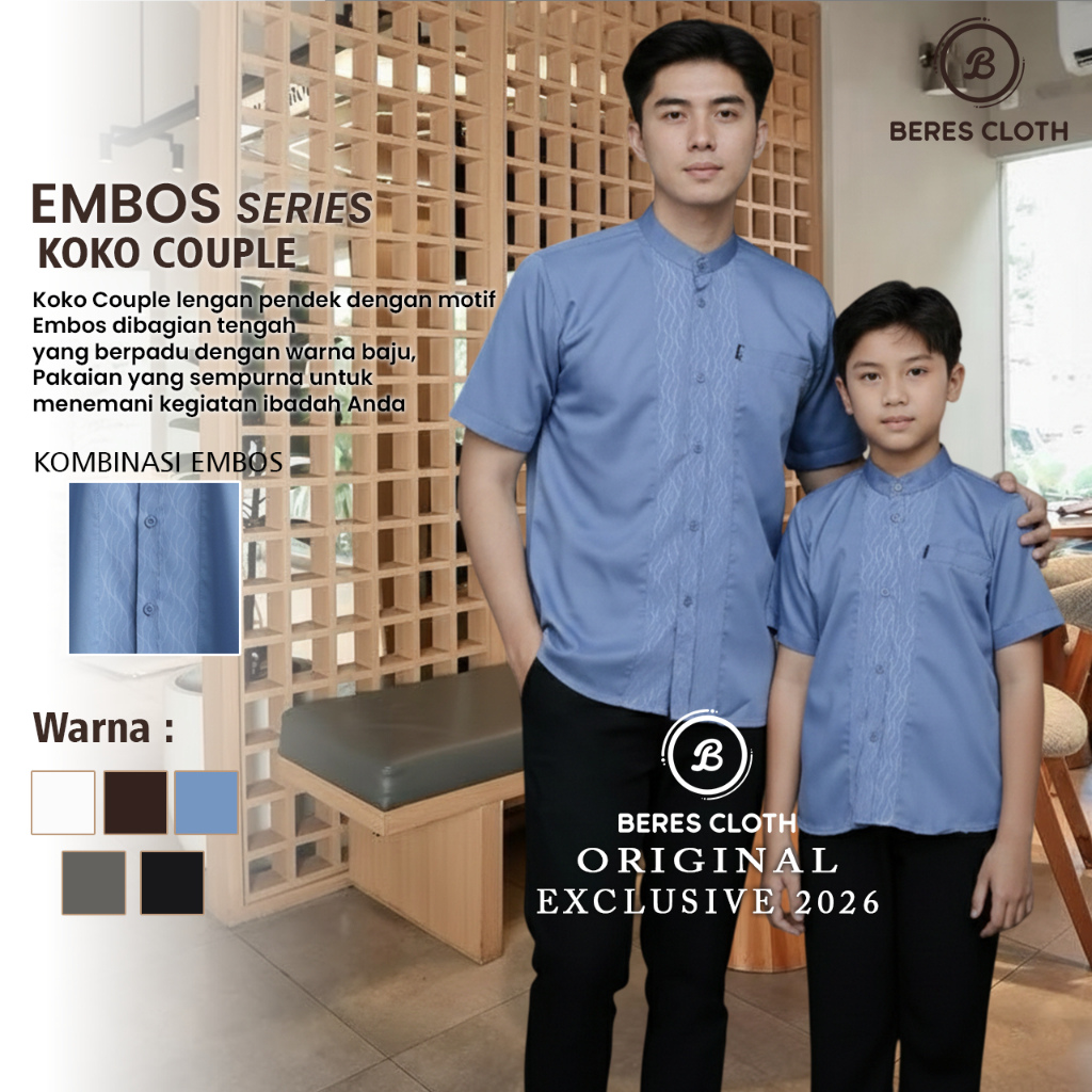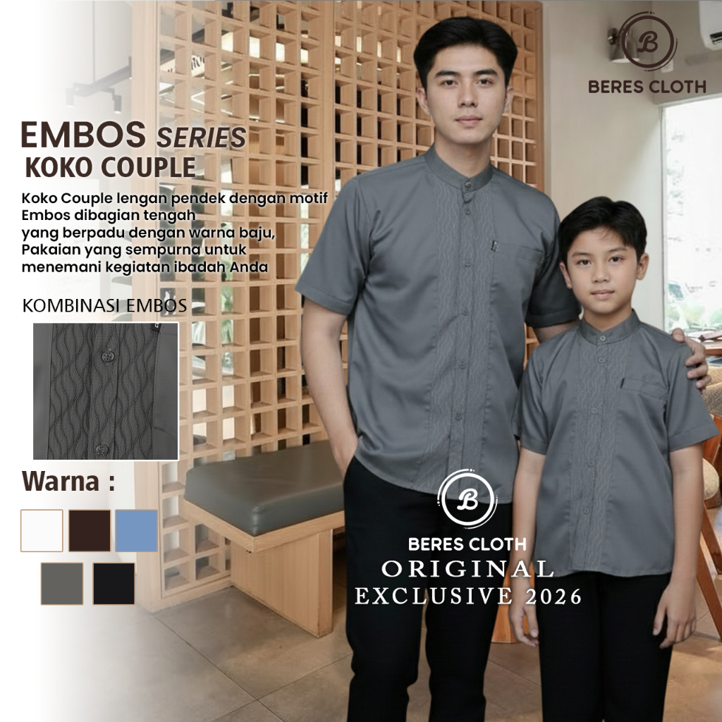 Baju Koko Couple Embos Ayah dan Anak Bahan Katun Adem - Baju Koko Anak - Baju Koko Lengan Pendek
