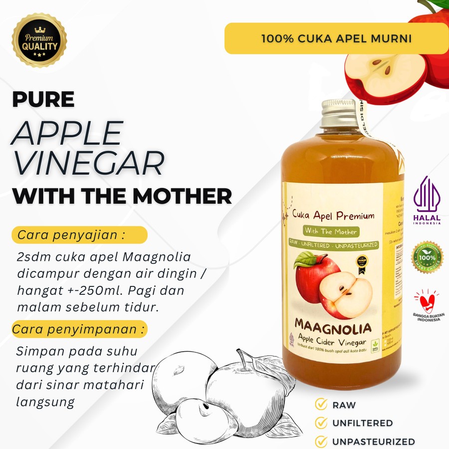 Cuka Apel Maagnolia 1 Liter Premium With Mother
